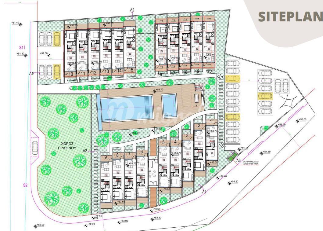 Проект состоит из 20 современных мезонетов с двумя и тремя спальнями. Все апартаменты состоят из кухни и гостиной открытой планировки, 1 главной ванной комнаты, 1 смежной, 1 туалета и прачечной, построенной по самым высоким стандартам.