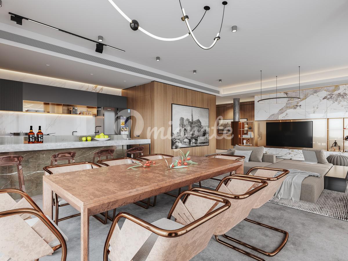 Умело спланированные апартаменты оптимизируют жилое пространство и предлагают просторную гостиную открытой планировки и кухню. Большие раздвижные окна выходят на просторные веранды, окружающие жилую зону.