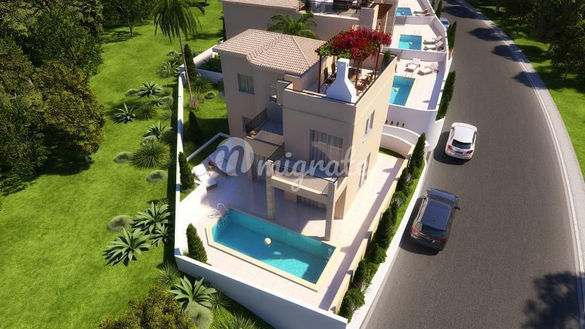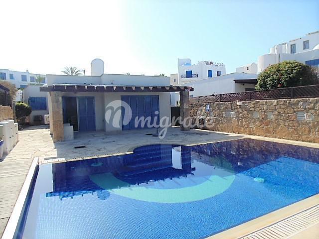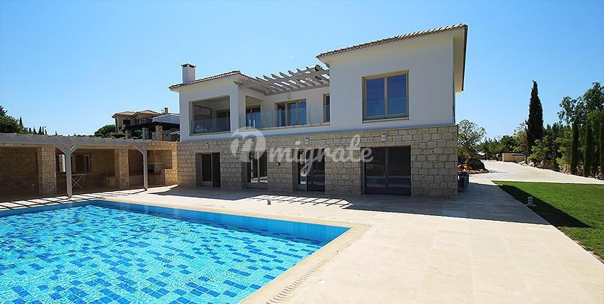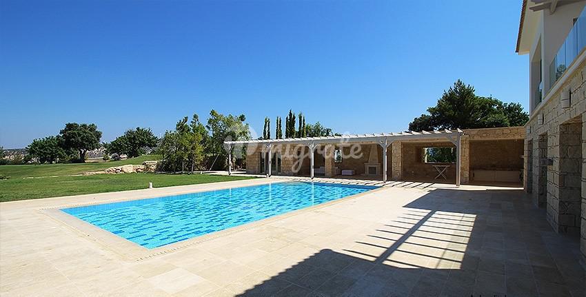 Двухэтажная вилла с частным бассейном расположена на роскошном закрытом гольф-курорте в Пафосе.На первом этаже находится прихожая, гостиная, столовая, кухня, кабинет, гостевая комната, гостевой санузе