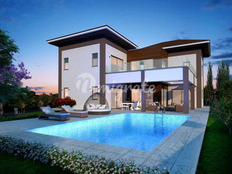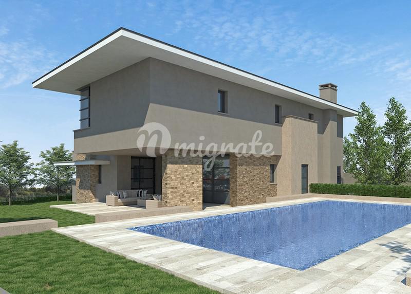 Вилла в современном стиле находится в комплексе, являющемся современной интерпретацией знаменитого итальянского парка с каскадными водопадами, ландшафтным дизайном и садами на зданиях.Вилла включает ч
