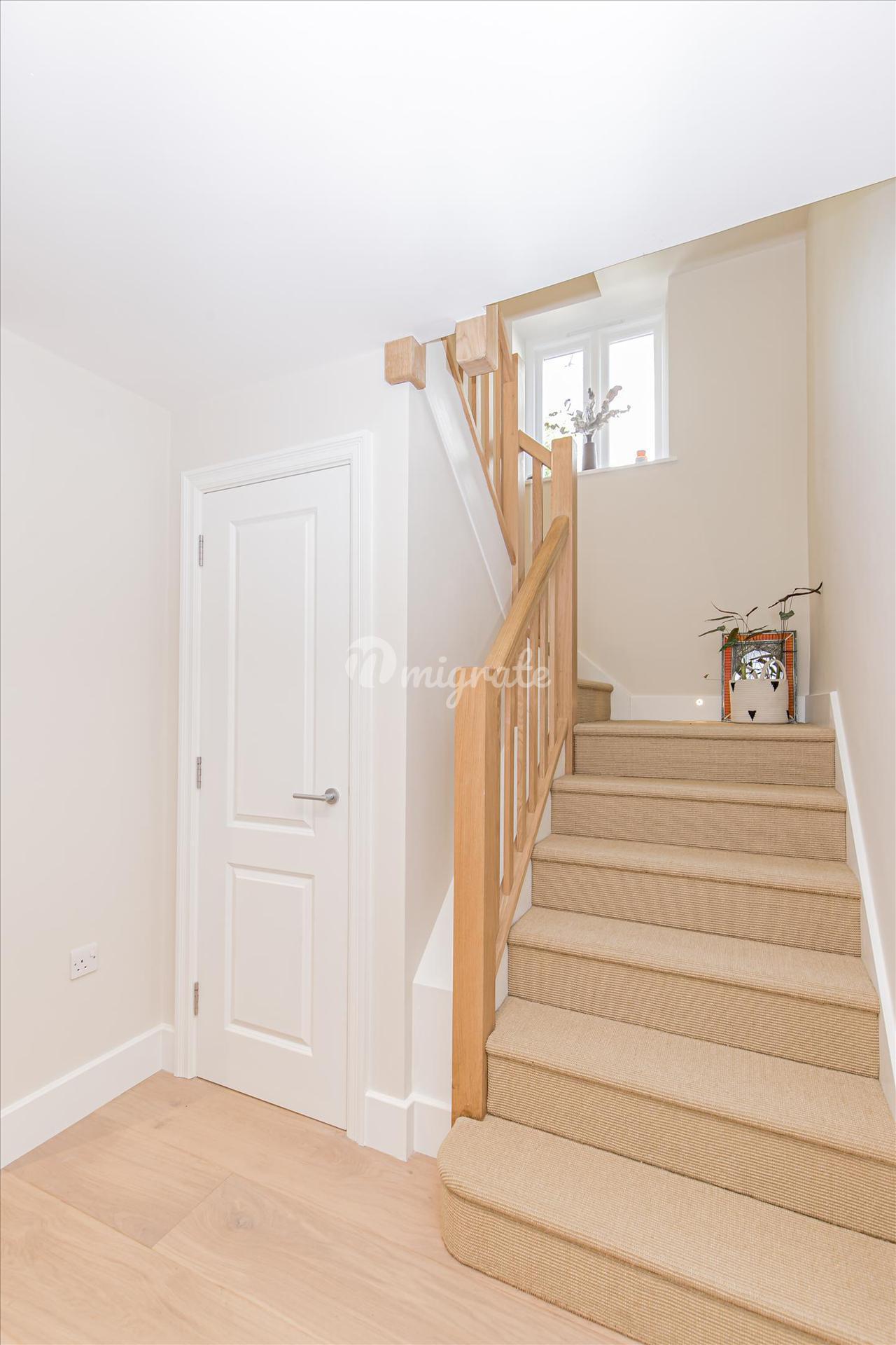Дом, построенный в 2020 году, расположен в стороне от дороги с парковкой на несколько автомобилей. Он отделан по высоким техническим требованиям с подогревом полов на первом этаже и радиаторами на верхних этажах. Входная дверь открывается в просторный холл с гостиной спереди с эркером. Семейная комната ведет в хорошо оборудованную кухню, которая обладает прекрасным естественным освещением и видом на сад. Кухня от Bulthaup оборудована техникой Siemens и Miele. На этом этаже также есть гардеробная и буфет. На втором этаже находится главная спальня с собственной душевой комнатой, еще одна спальня с ванной комнатой, две спальни с двуспальными кроватями и семейная ванная комната на втором этаже. Спереди есть парковка на улице на две машины и кабель для автомобильного зарядного устройства. Задний сад благоустроен с мощеной террасой, приподнятым газоном с дорожкой с одной стороны, ведущей к пристройке с сауной, мойкой велосипедов и магазином. В доме также есть солнечные панели, проводка Cat6 и звукоизоляция на всех этажах.
