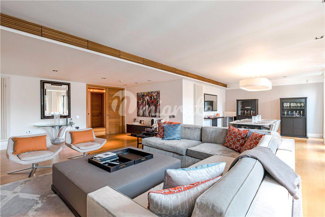 Великолепная квартира с 3 спальнями, расположенная в стильном жилом комплексе Mayfair с лифтом и круглосуточным портье. EPC: C. В этом отеле есть просторная приемная / столовая длиной 33 фута с 6 французскими дверями, ведущими на отдельный балкон, элегантная оборудованная кухня с элементами из нержавеющей стали и барной стойкой с мраморной столешницей, а также главная спальня с ванной комнатой и гардеробной. . В квартире также есть 2 двухместные спальни с ванными комнатами, подсобное помещение, гостевой туалет, шкаф для верхней одежды, впечатляющий холл, дубовые деревянные двери повсюду и интеллектуальная система управления освещением.