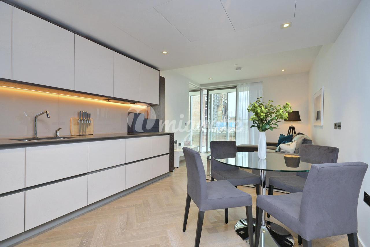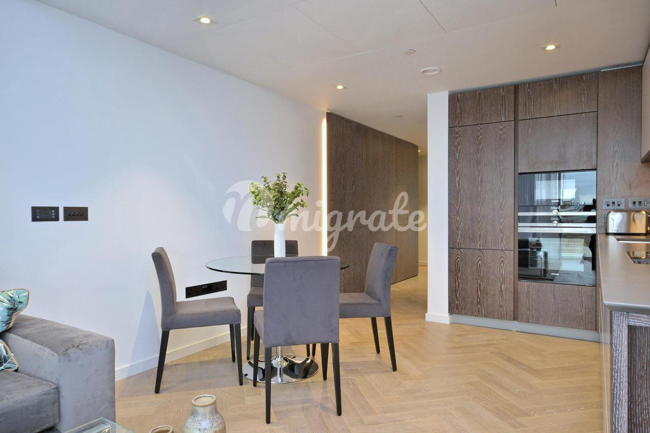 Расположенная на седьмом этаже и предлагающая просторную жилую площадь 1018 кв.футов, недвижимость включает в себя две спальни с двуспальными кроватями, две ванные комнаты (1 из них смежная), а также большую кухню открытой планировки и приемную. В квартире есть полы с подогревом, комфортное охлаждение и красивый деревянный паркетный пол по всей территории. Квартира имеет доступ к двум частным зимним садам. Из одного из которых открывается вид на знаменитую электростанцию Баттерси, а также прекрасный вид на реку.