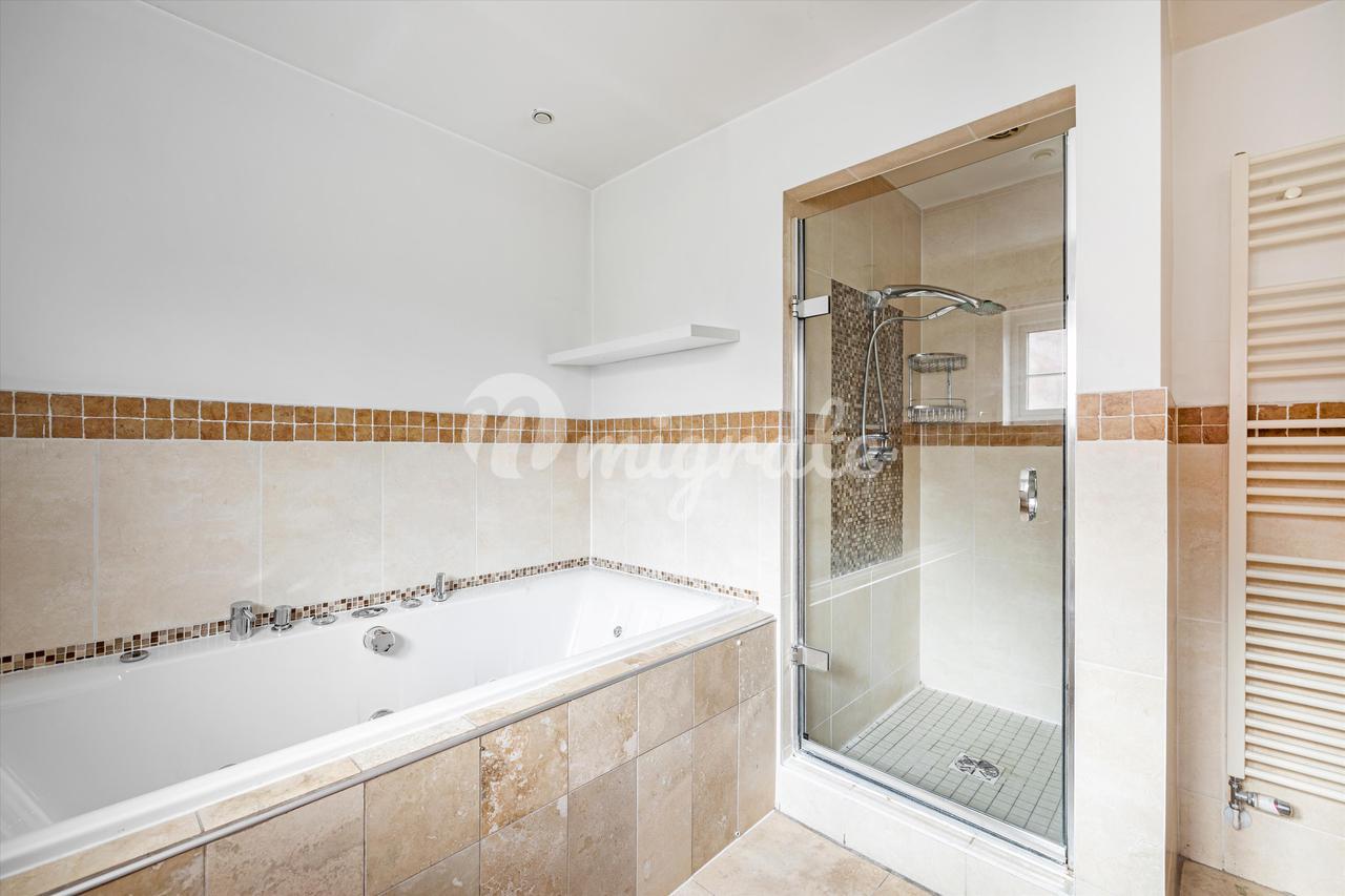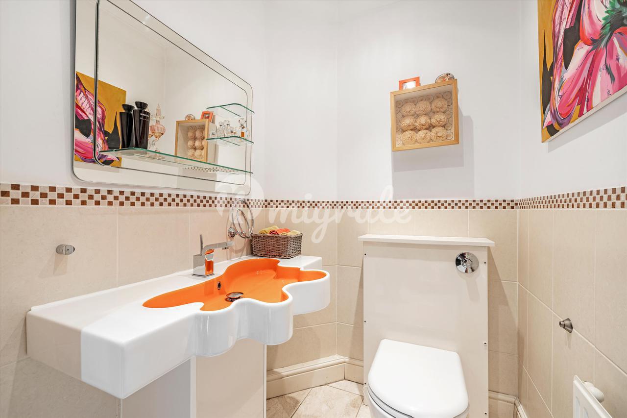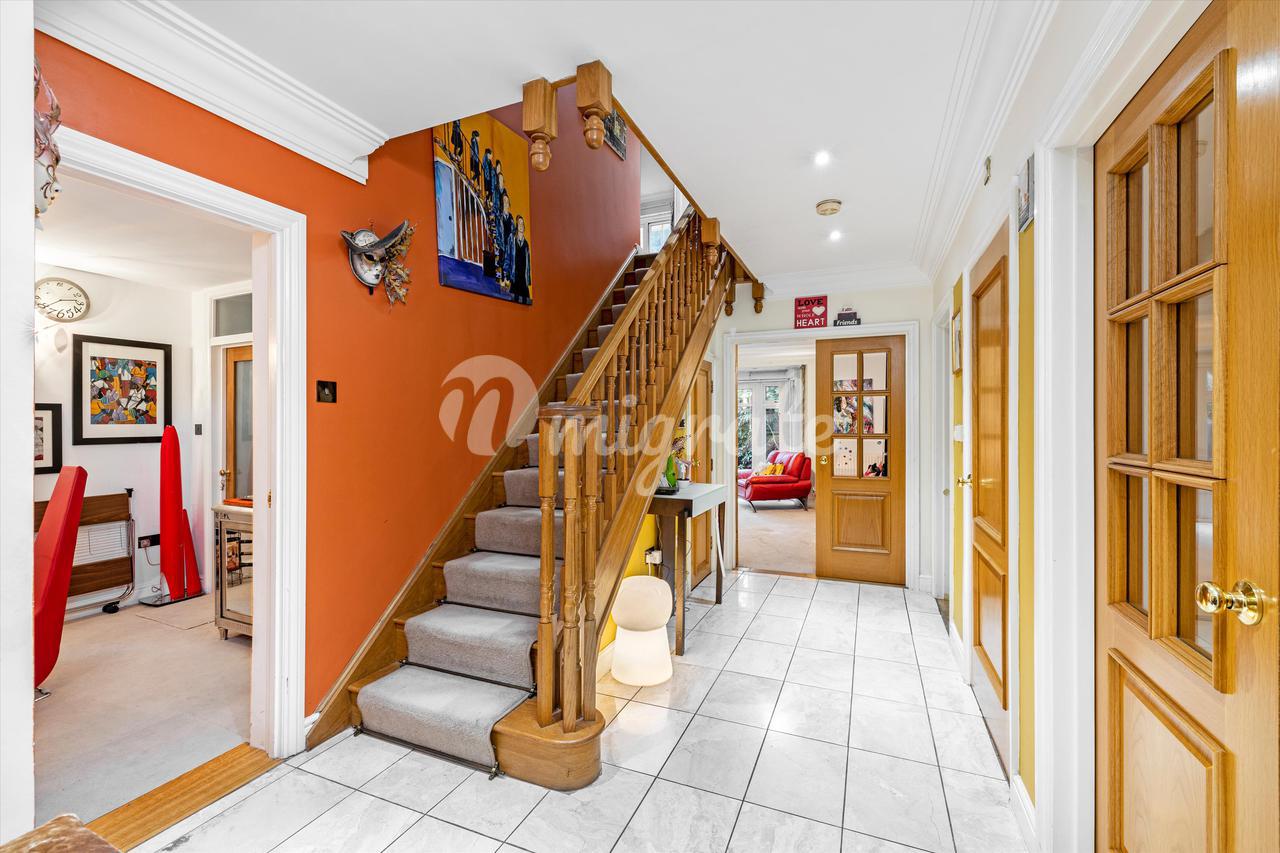 При входе в этот впечатляющий семейный дом с двойным фасадом вас встречает широкий коридор, ведущий в различные жилые помещения. В передней части дома находится светлая гостиная с эркером и отдельная столовая, в которой есть подсобное помещение, удобное для хранения хозяйственных вещей. Сюда можно попасть через один из двух боковых входов в дом. Задняя часть собственности превращается в современную кухню с бытовой техникой Miele и дополнительную гостиную с камином с видом на ухоженный безмятежный сад. Существует также гостевая гардеробная, обслуживающая дом. Первый этаж состоит из четырех спален (две с ванными комнатами) и отдельной умной семейной ванной комнаты. Главная спальня расположена в задней части дома, из нее открывается вид на зеленый сад и гардеробную. Четвертая комната в настоящее время используется как офис/кабинет.