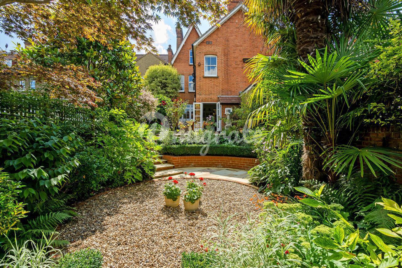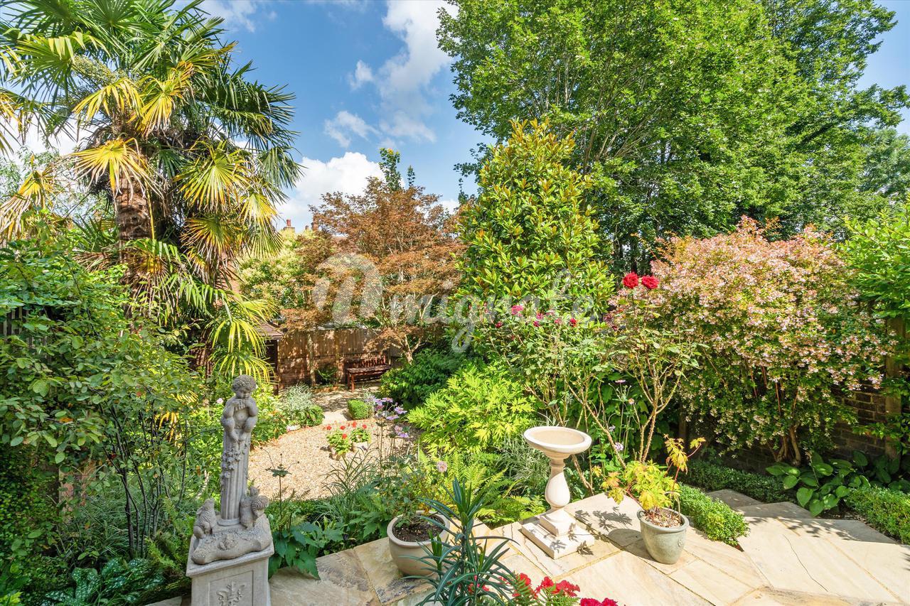 Задний сад был красиво озеленен на двух уровнях. Терраса из индийского песчаника огибает дом со ступенями, ведущими вниз к другим террасам с беседкой в нижней части сада. Сад окружен множеством зрелых и красивых образцов деревьев и растений, создавая невероятно уединенное и спокойное пространство.
