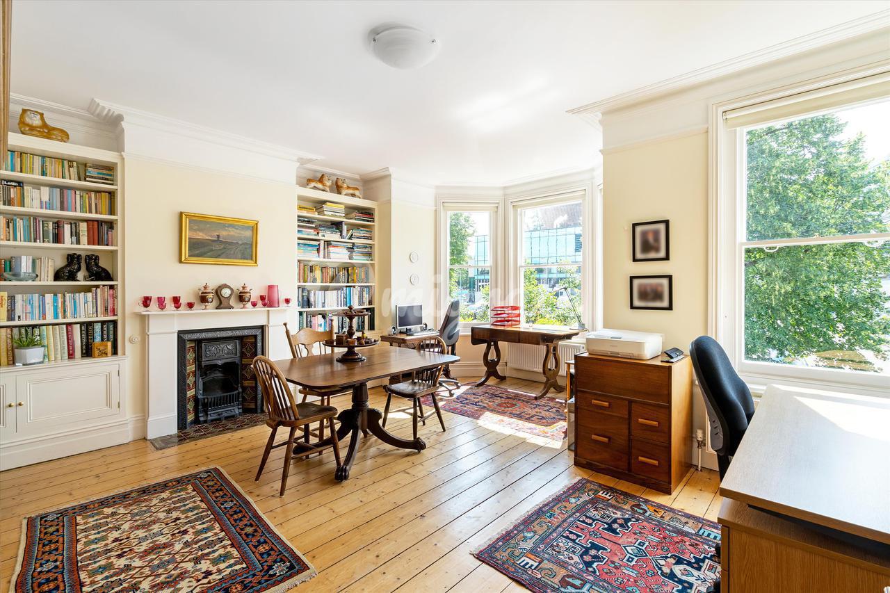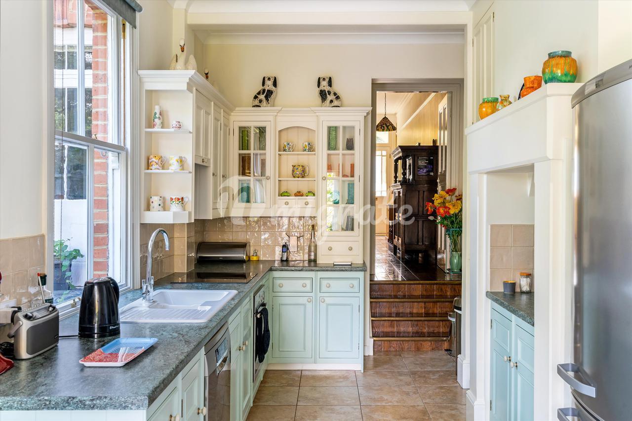 На первом этаже находится прекрасная гостиная с центральным камином и эркером, просторная столовая с дверью, ведущей в задний сад, и кухня с двойными дверями на заднюю солнечную террасу. Нижний этаж имеет отдельный доступ и может быть использован как квартира-студия с ванной комнатой и мини-кухней. На первом и втором этажах вместе расположены четыре спальни с двуспальными кроватями, ванная комната, отдельная душевая комната и гардеробная, которую также можно использовать как кабинет, небольшую спальню или подсобное помещение.