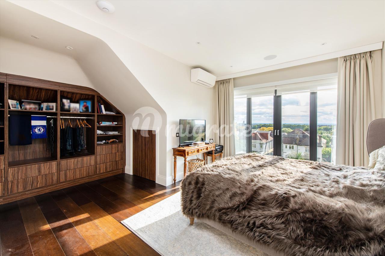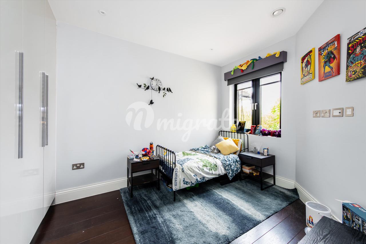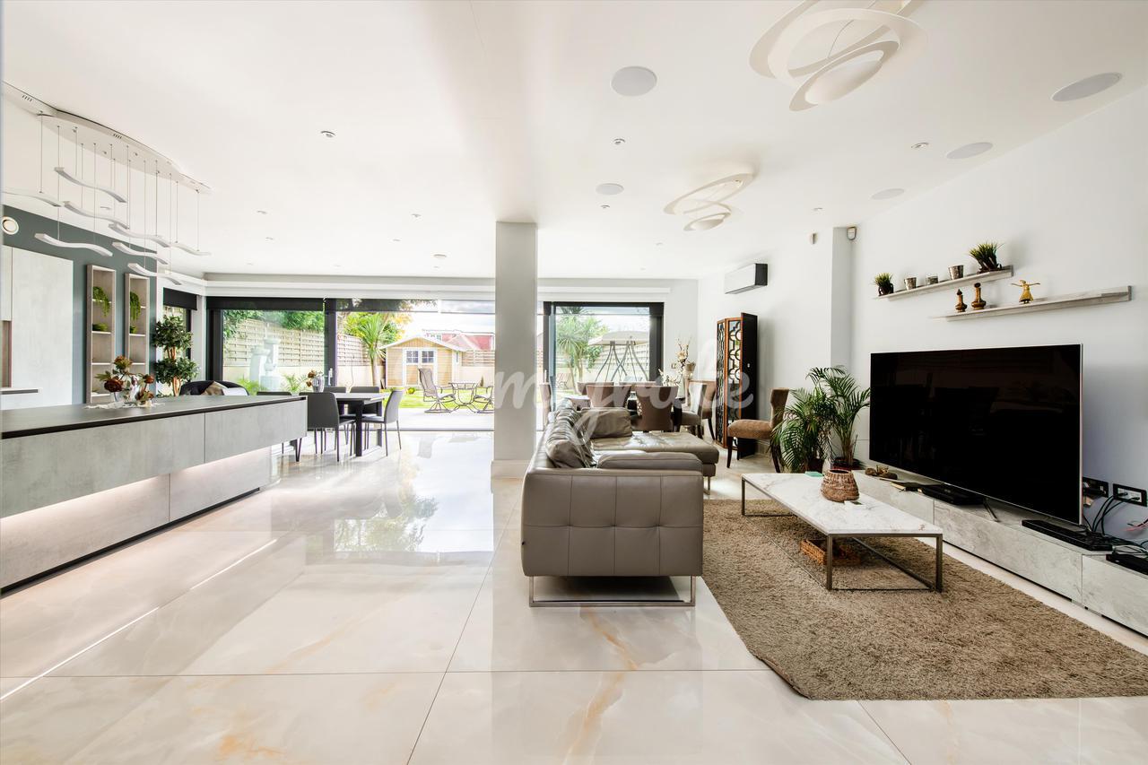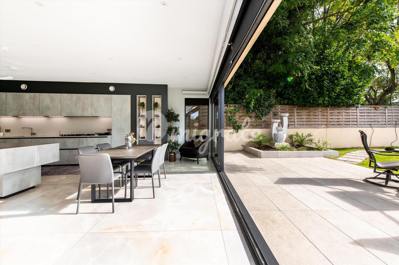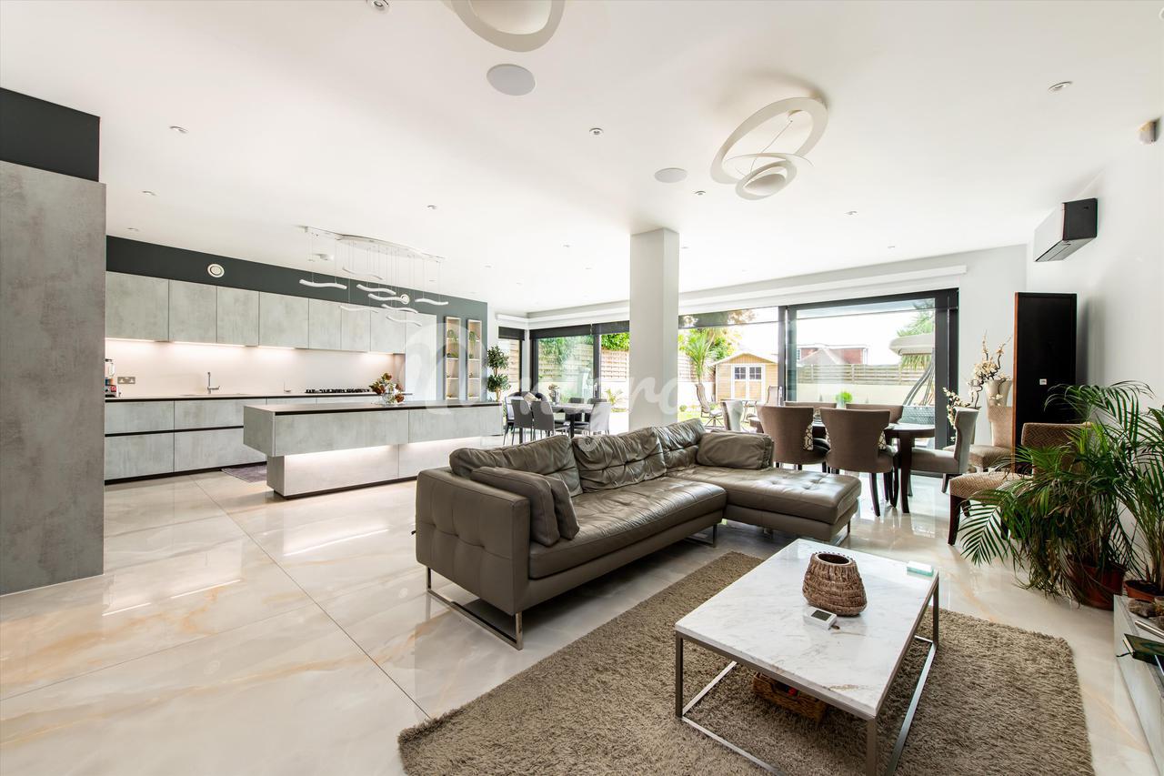 Привлекательный двухквартирный дом, красиво спроектированный по высоким стандартам, создающий светлые, хорошо спланированные помещения. Это поразительное свойство имеет прекрасный сад, выходящий на южную сторону, и парковку во дворе на 3 машины. Этот просторный дом с пятью спальнями впечатляет с первого взгляда. На первом этаже находится прекрасно отделанная приемная с большим эркером, создающая теплую и интимную атмосферу. Задняя часть собственности превращается в светлую, просторную кухню открытой планировки, столовую и приемную с двойными дверями, которые ведут прямо в сад, выходящий на южную сторону, наполняя собственность естественным светом. На первом этаже есть четыре спальни, все со встроенными шкафами, две ванные комнаты и семейная ванная комната. Верхний этаж был переоборудован и является домом для главной спальни с роскошной ванной комнатой и гардеробной. Во всем доме полы с подогревом и кондиционеры. Дополнительные преимущества включают управляемое мобильным телефоном освещение, жалюзи и шторы, а также звуковые системы.