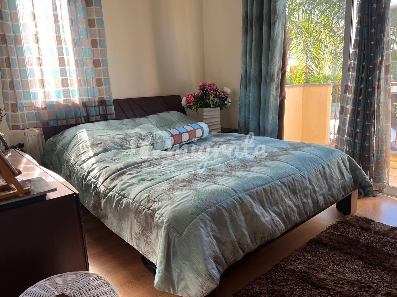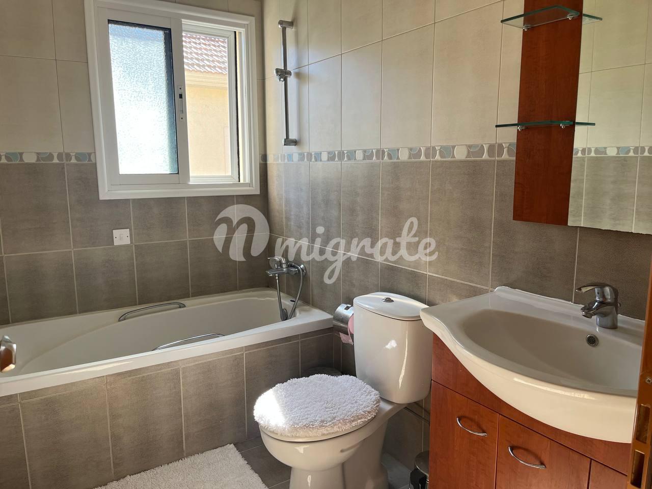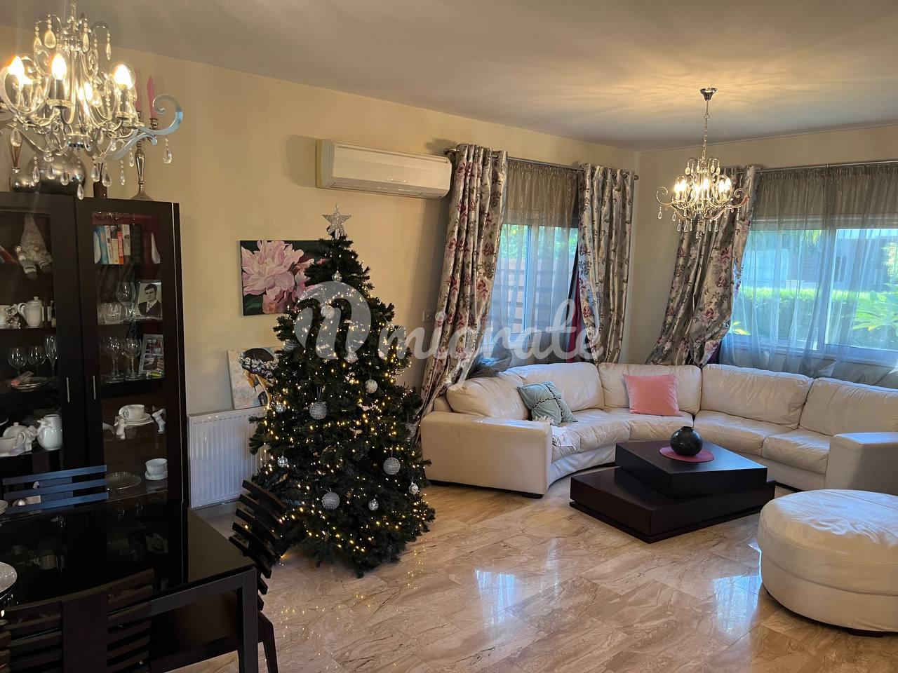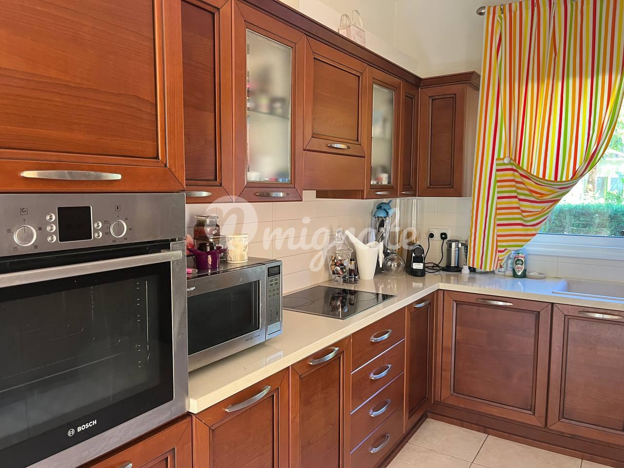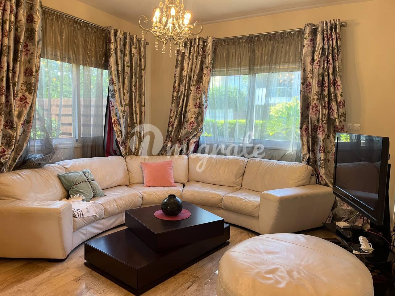 Дом полностью меблирован, оснащен кондиционером и центральным отоплением. Он состоит из 2 уровней. На 1 уровне расположены гостиная, отдельная кухня и гостевой туалет, на втором уровне расположены 3 спальни и 2 ванные комнаты. Также есть бассейн, кладовая и открытая парковка. Право собственности