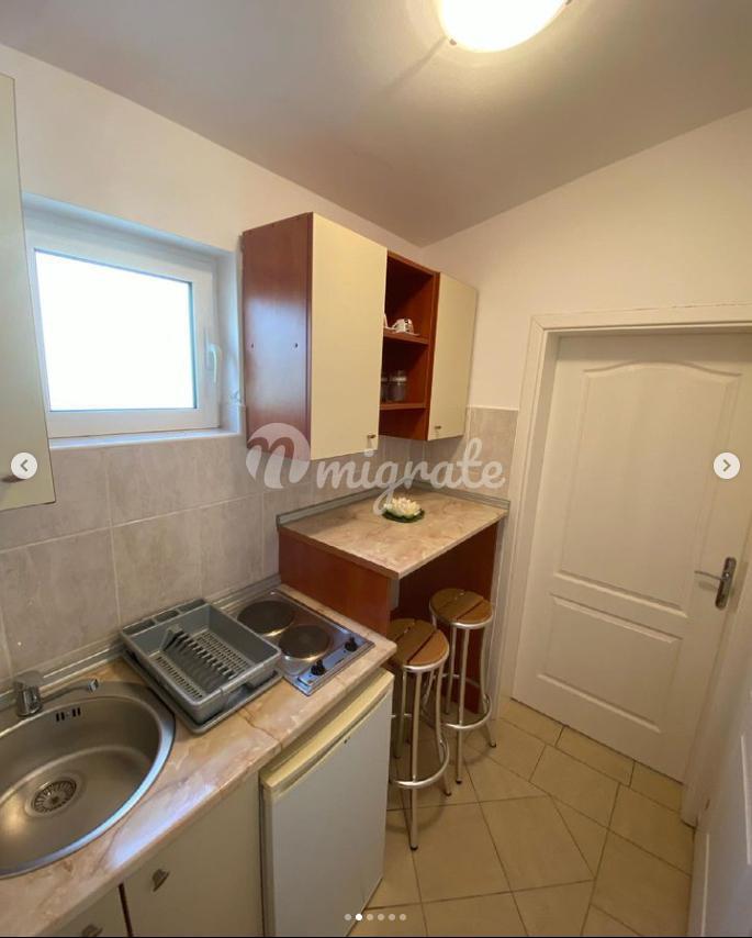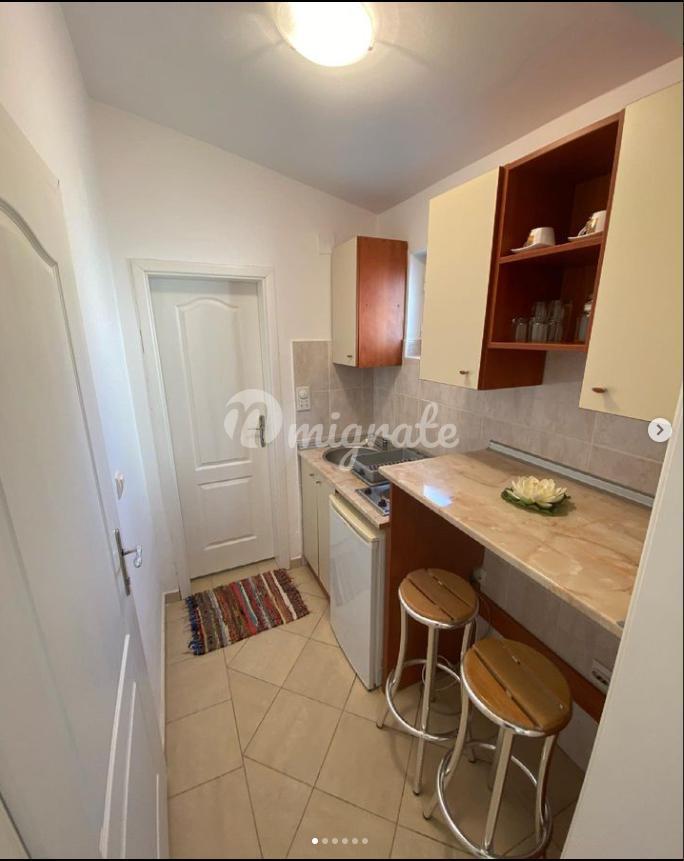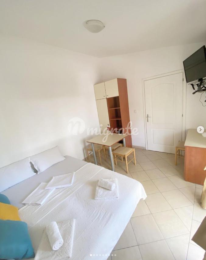 Продается двухэтажный дом на 6 квартир в тихом месте у моря. Дом расположен в туристическом курорте Добра Вода, недалеко от города Бар. Площадь дома 220 м2, а площадь участка, на котором он расположен, 229 м2. Планировка дома: Дом спроектирован так, что на каждом этаже по 3 отдельные квартиры. На каждом этаже есть одна спальня и две квартиры-студии. Каждая квартира имеет собственную ванную комнату и кухню. Квартиры оборудованы и меблированы. В каждой квартире есть кондиционер. В доме есть терраса на крыше площадью почти 100 м2 с прекрасным видом на море. Море всего в 200 м от дома, поэтому рядом кафе, рестораны, магазины.
