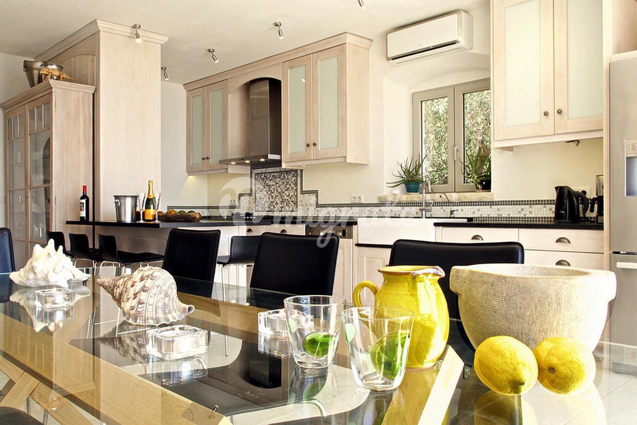 Вилла включает столовую на открытом воздухе, полностью оборудованную кухню, множество террас, зону барбекю, массажную комнату, домашний кинотеатр.