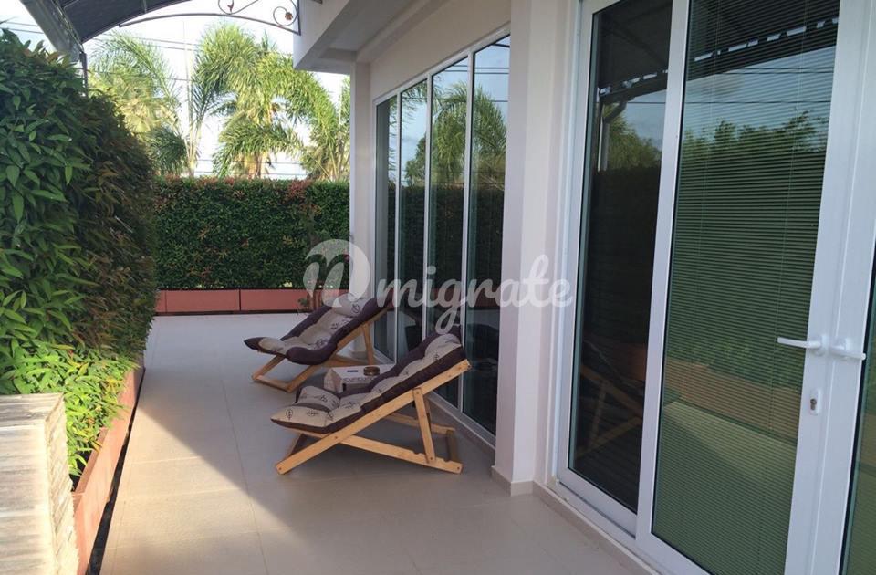 Дом находится в коттеджном поселке расположенном в южной части города Паттайя в престижном районе Silver Lake. Поселок называется Mountain Village 1. Рядом находится гора золотого Будды , виноградники, озеро, в непосредственной близости находится Военный пляж (Sai Keaw), аквапарк, дельфинарий. По соседству находится тропический парк Nong Nooch. Площадь дома 385 м2 (площадь первого этажа 189 м2 , площадь второго этажа 196м2). Площадь земли 544 м2.; Площадь бассейна 32 м2.; Площадь парковки 16.5 м2. Дом двух этажный 5 спальных комнат, 5 ванных комнат, большая гостиная , кухня, сад, бассейн, на втором этаже расположена терасса. В доме индивидуальное спутниковое телевидение, интернет, оптико-волоконный кабель и спутниковый интернет. В бассейне установлена специальная система солевой водоподготовки хлор и химию бросать не надо. Сад поливаеться автоматизированно. В доме установлена индивидуальная сплит система кондиционирования. Дом полностью мебелирован по евро стандарту.