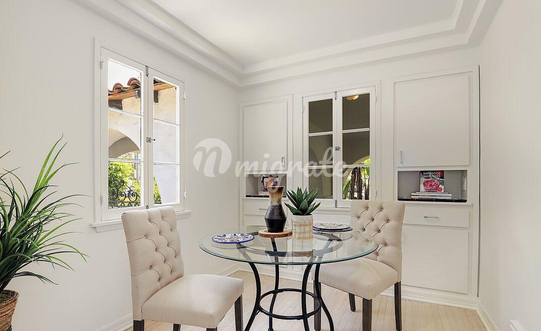 Мы приглашаем вас в этот очаровательный испанский дом с 3 спальнями в историческом районе Картей-Серкл. Войдите в парадную прихожую, а затем проследуйте в большую гостиную. Вы заметите мастерство исполнения во всем доме, от детализированной лепнины до богато украшенных балок. Изысканные детали дополняют кухонную плитку в голливудском стиле ар-деко. Сквозная дверь в официальную столовую является данью уважения стилю ушедшей эпохи, и, пожалуйста, не пропустите отдельный зал для завтраков. Из вашей очень просторной основной спальни пройдите через французские двери в свой личный оазис, похожий на спа-салон, который является основной ванной комнатой. Примите расслабляющую ванну или воспользуйтесь душем из стекла и мрамора, наслаждаясь естественным освещением, проникающим через большое окно в крыше. В большой второй спальне есть два встроенных шкафа и выход во внутренний дворик. Просторная третья спальня соединяется с прилегающей ванной комнатой. Есть дополнительная комната, идеально подходящая для кабинета с дверями, выходящими во внутренний дворик. Этот дом расположен по соседству с Беверли-хиллз.