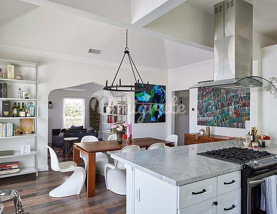 Этот тщательно переосмысленный дом был превращен в современный оазис. Независимо от того, устраиваете ли вы званый ужин в уединенном внутреннем дворике, купаетесь в бассейне или проводите сиесту в лаундж-зоне на открытом воздухе, вы будете наслаждаться спокойствием окрестностей. Этот дом с идеальными пропорциями предлагает исключительные условия для проживания: залитая солнцем гостиная с высоким куполообразным потолком и обеденной зоной, украшенной лепниной в виде короны и эффектной люстрой. Кухня легко сочетает в себе функциональность и стиль с использованием лучших материалов и фурнитуры. Примечательно, что спальни в этом доме просторные, а во всех комнатах достаточно места для шкафов. Основная спальня расположена в задней части дома и обеспечивает истинное уединение с видом через французские двери, ведущие к бассейну и потрясающей гостиной зоне на открытом воздухе. Семейная комната / четвертая спальня также выходит окнами на бассейн через французские двери, что обеспечивает беспрепятственное проживание в помещении и на открытом воздухе. Снаружи был тщательно и вдумчиво разработан живописный ландшафтный дизайн, охватывающий территорию дома и улучшающий образ жизни на свежем воздухе. Кроме того, здесь есть отдельное рабочее пространство, залитое светом, идеально подходящее для домашней жизни и работы. Расположенный рядом с впечатляющими ресторанами и развлекательными заведениями, этот дом станет идеальным вариантом для вас.