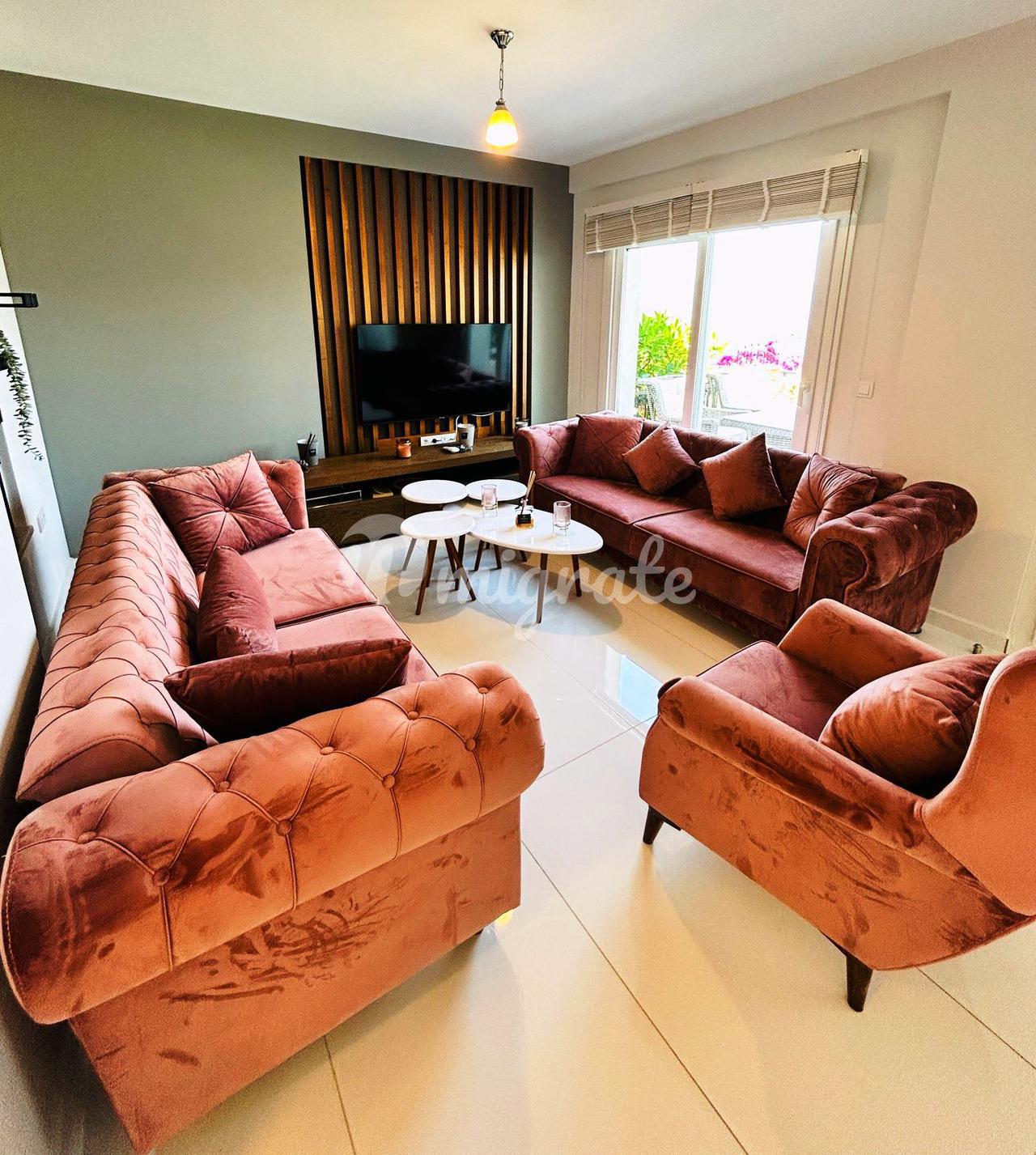 Дуплекс с 2 спальнями, 1 гостиной и кухней, 2 ванными комнатами. Характеристики: полный вид на море, сад, кондиционер, отопление, большой балкон с видом на море, пляж, 5 общих бассейнов, детский бассейн, мини аквапарк, мебель и кухонная техника, СПА, тренажерный зал, спортивная площадка, пешеходная/беговая дорожка - охрана и система видеонаблюдения. Инфраструктура: 150 метров до супермаркета, 15 минут езды до аэропорта Бодрума, 20 минут езды до центра Бодрума.