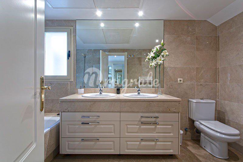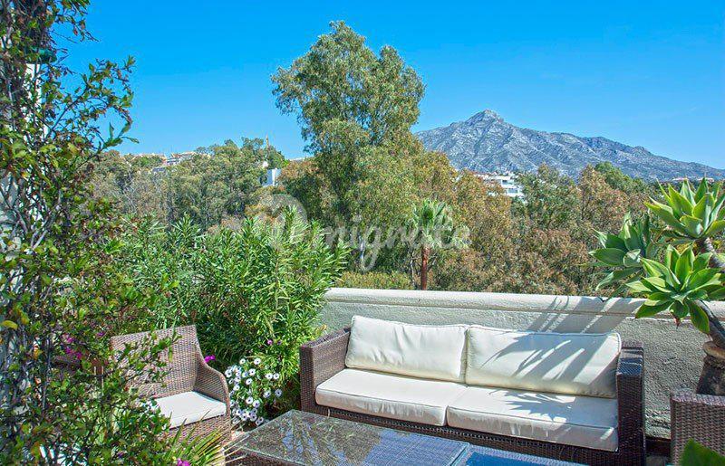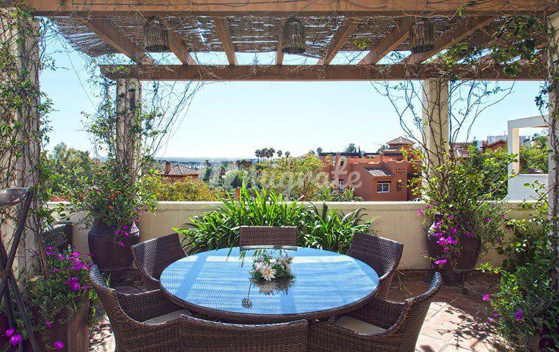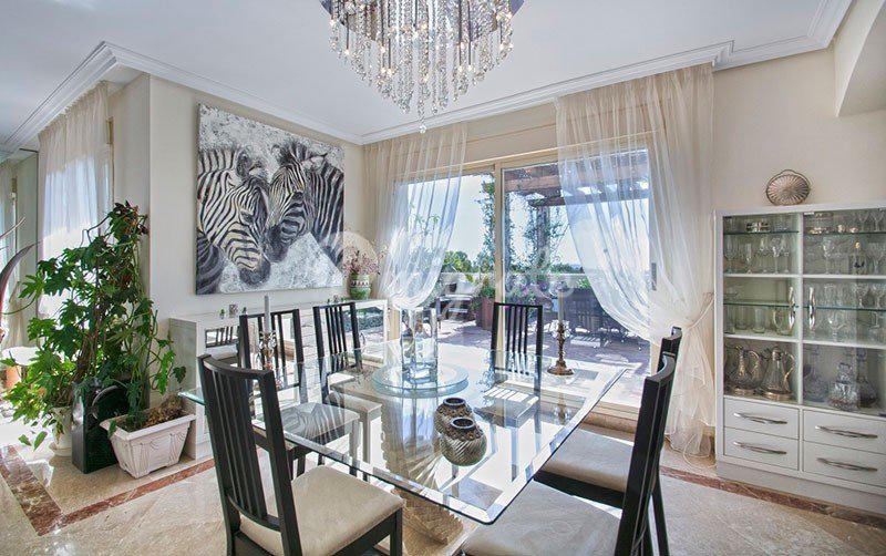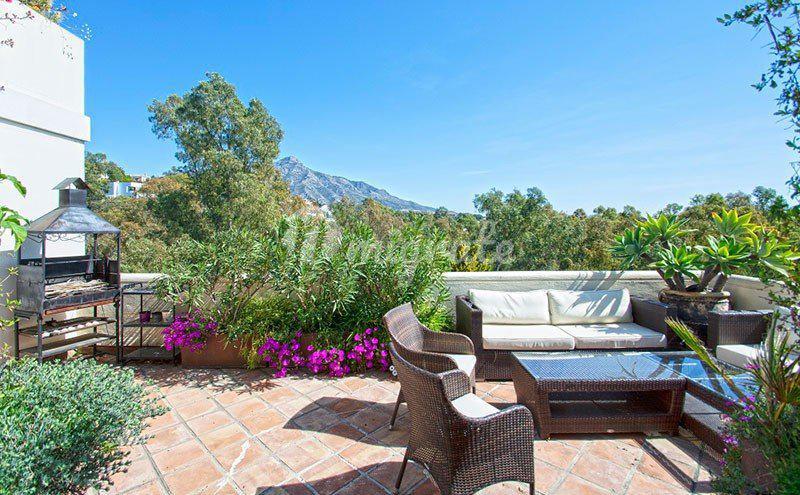 Уникальный пентхаус - дуплекс расположился в престижном жилом комплексе, в районе Новая Андалусия, Марбелья. Апартаменты расположились на двух уровнях. На первом этаже находится полностью оборудованная современная кухня, большая гостиная с камином, обеденная зона, спальня с ванной комнатой. Из гостиной выход на приватную террасу, идеально подходящую для отдыха в тени жаркими летними днями. Вторая терракотовая терраса впечатляет прекрасным видом на море, окрестности и "Черепашье озеро". На этом этаже находится главная спальня с гардеробной, ванная комната с джакузи. Из главной спальни доступ на террасу / солярий, с которой открывается потрясающий вид на африканское побережье, гору La Concha и море. Пентхаус имеет 3 подземных парковочных места и кладовую комнату. Закрытый охраняемый комплекс имеет на территории общий бассейн, тренажерный зал и сауну. Это идеальное место для игроков в гольф, известное как Golf Valley. В этом районе есть четыре основных, хорошо известных поля для гольфа: Las Brisas Golf, Los Naranjos Golf, La Quinta Golf и Aloha Golf. Рядом вся необходимая инфраструктура, большой выбор ресторанов, кафе и баров, множество развлечений. Пуэрто Банус и Марбелья находятся в семи минутах езды.