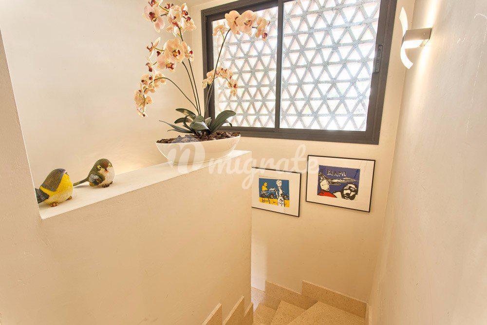 Есть также верхний этаж, где расположены: главная спальня с ванной комнатой и две гостевые спальни с общей ванной комнатой, просторная терраса с джакузи. Один гараж и кладовая комната.