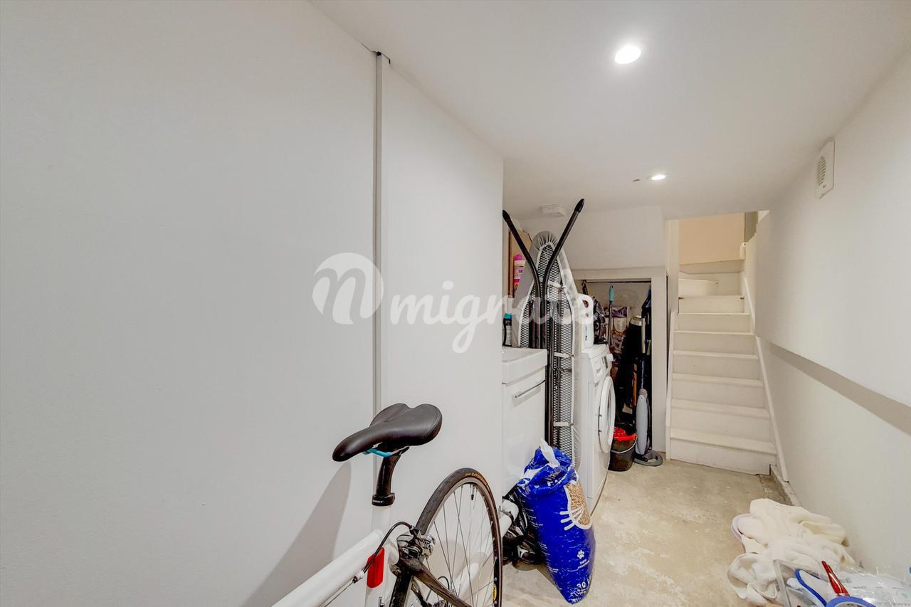 В передней части дома есть большая гостиная, спальня с двуспальной кроватью, встроенными шкафами и собственной ванной комнатой. В задней части находится кухня / столовая открытой планировки с современной кухонной техникой и дверями, ведущими в частный сад с террасой на заднем дворе. Кроме того, на первом этаже есть туалет и полезный подвал, который используется для хранения вещей и как подсобное помещение с дополнительным холодильником / морозильной камерой.