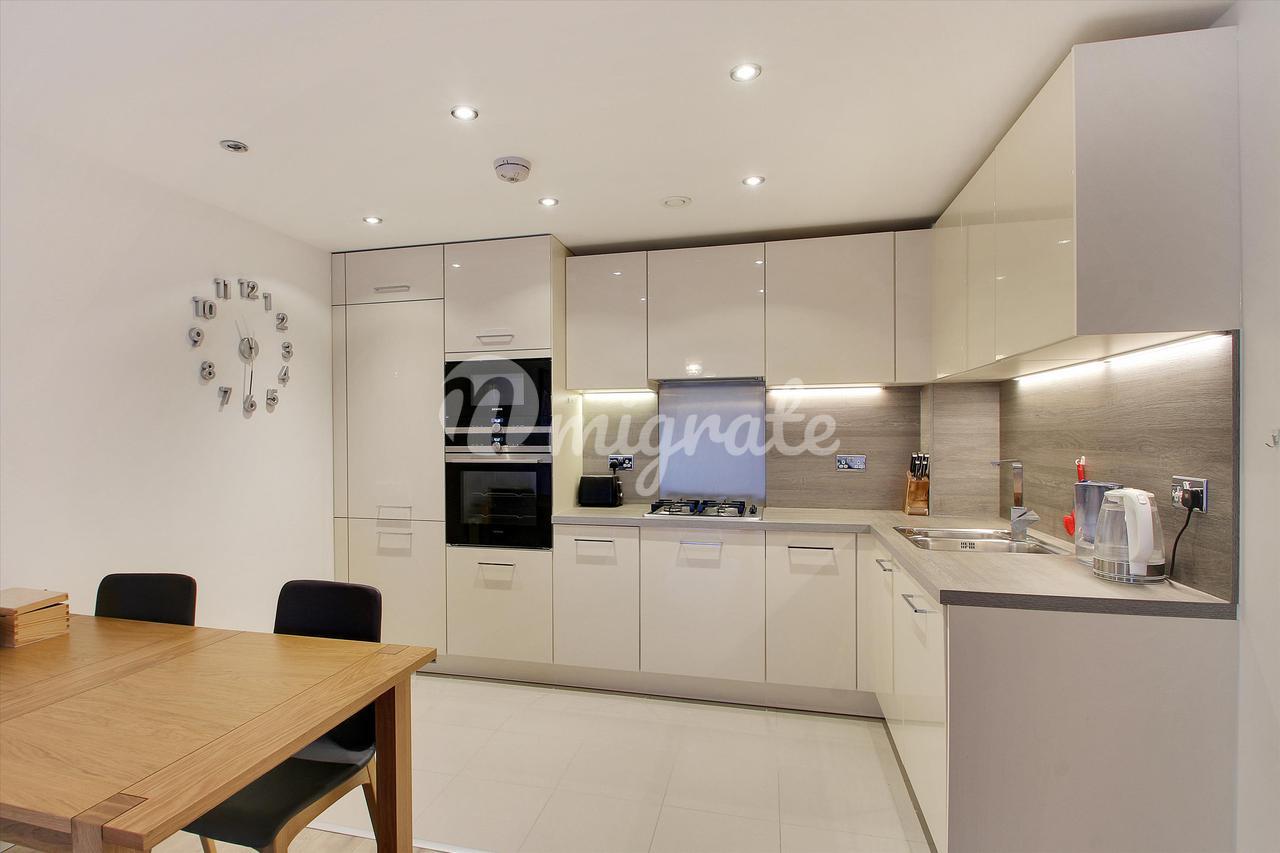 Кухня/столовая/гостиная — это фантастическое пространство с выходом на собственный балкон. Кухня имеет ряд настенных и напольных встроенных модулей, а также встроенную технику.