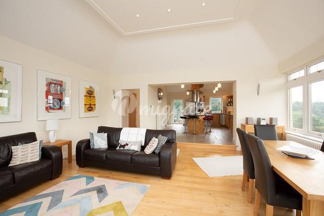 5 The Riverview - это великолепно обставленный и красиво отделанный пятикомнатный пентхаус, занимающий весь пятый и шестой этажи того, что первоначально было зернохранилищем на Эдингтон Милл. Балконы, выходящие на южную сторону, и просторные террасы на крыше позволяют максимально использовать исключительный вид на скалистые утесы долины и реку Уайтэддер внизу, а также окружающую загородную местность Бервикшира. Это невероятно спокойное место, где после наступления сумерек небо становится темным. Вся квартира с двойным остеклением; во всех ванных / душевых комнатах полы с подогревом. Выходящая на южную сторону и поразительно просторная кухня / столовая / гостиная / солярий открытой планировки имеет прямой выход на террасы на крыше из с которого можно любоваться видами и окрестностями в течение всего дня. В главной спальне есть собственный балкон, выходящий на южную и западную стороны, на который в наибольшей степени проникает послеполуденное и раннее вечернее солнце. В гостиной также есть балкон. Кухня/зал для завтраков хорошо оборудована индукционной плитой, двойной духовкой, микроволновой печью, посудомоечной машиной и холодильником для вина. В подсобном помещении есть стиральная машина с сушилкой. Снаружи есть частная парковка и небольшой участок леса. Четыре квартиры и пентхаус в блоке совместно используют факторинг и управляют собственным банковским счетом.
