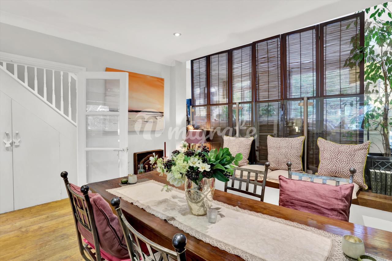 На первом этаже расположена просторная гостиная с большой приемной с большими дверями в зрелый сад. Приемная и кухня двухуровневые и полуоткрытой планировки со стеклянной перегородкой в современном стиле между ними. Кухня оборудована белыми панелями, гранитными рабочими поверхностями и встроенной бытовой техникой, а также большой обеденной зоной. На втором этаже расположены две спальни с двуспальными кроватями и встроенной кладовой, семейная ванная комната с душем над ванной, а также спальня с односпальной кроватью или кабинет. На верхнем этаже отеля находится главный люкс, в котором есть стена со встроенными шкафами и собственная ванная комната с утопленной ванной.