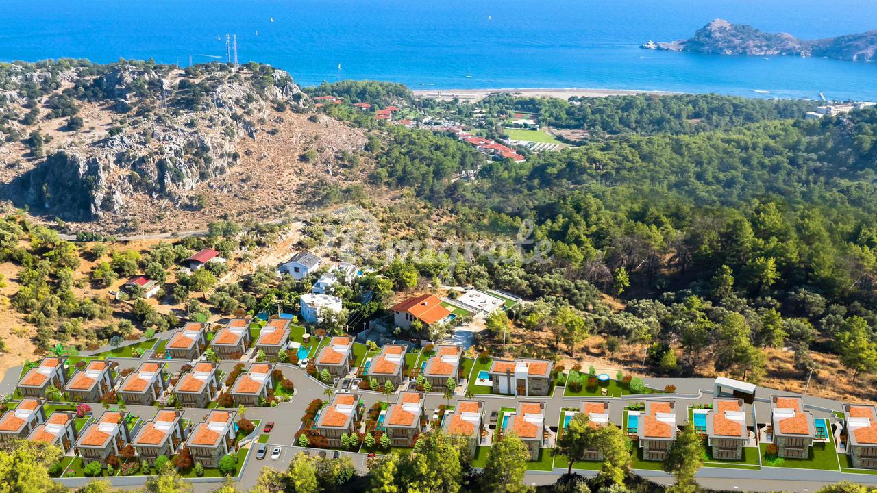 Комплекс из 26 вилл в эксклюзивном месте города Фетхие 4+1. У каждой виллы 500 м2 земли, бассейн, 250м2 жилой площади. Комплекс в окружении природы, 800 м до моря и прекрасных пляжей. Рядом поля для гольфа, 2км до магазинов, ресторанов. Эксклюзивное, тихое место для отдыха всей семьёй. Со всех вилл открывается прекрасный вид на море и природу. До аэропорта Даламан - 25 мин на машине.