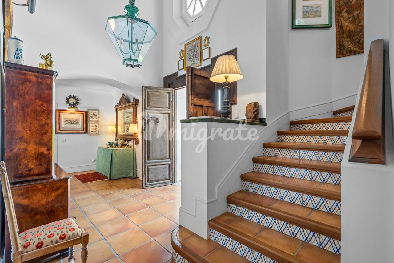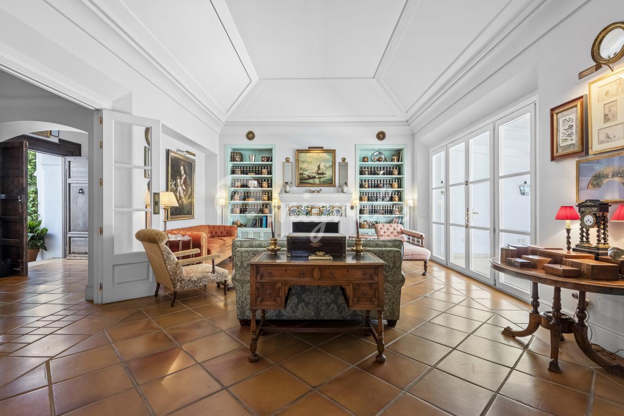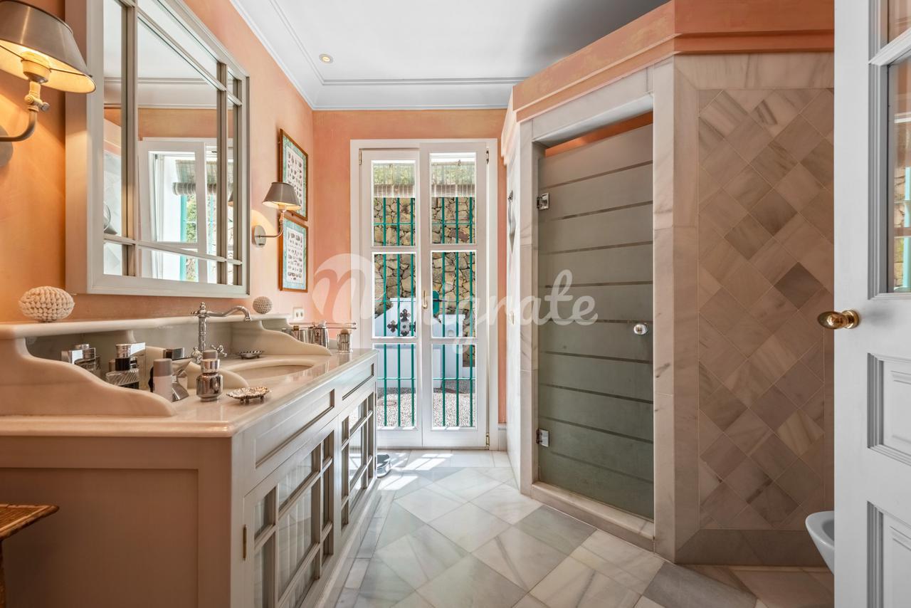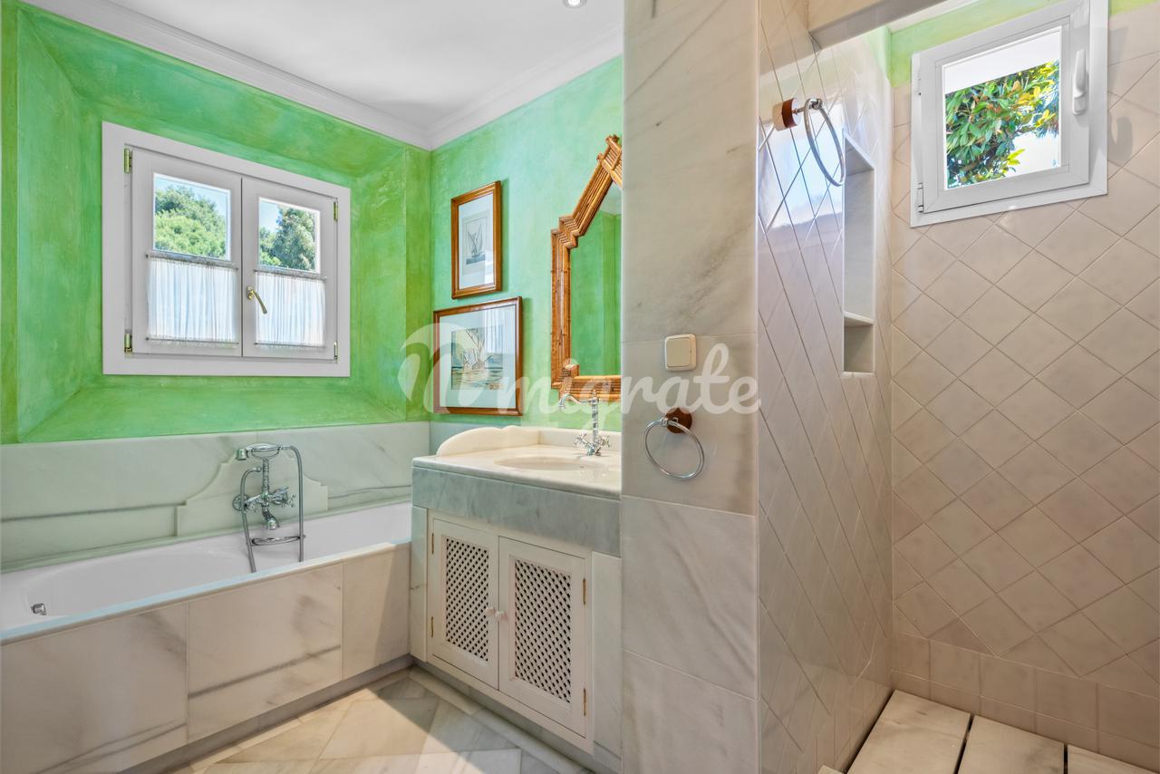 На первом этаже мы находим холл, гостиную и столовую с выходом на красивую крытую веранду и в сад. Библиотека, кухня, прачечная, служебная спальня с ванной и гостевой туалет. Наконец главная спальня с ванной комнатой и гардеробной.