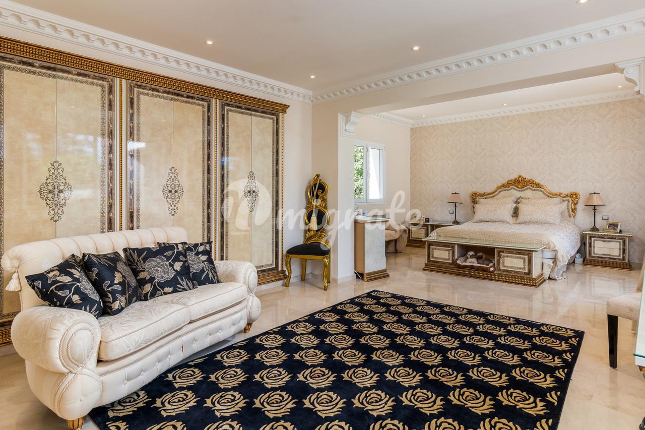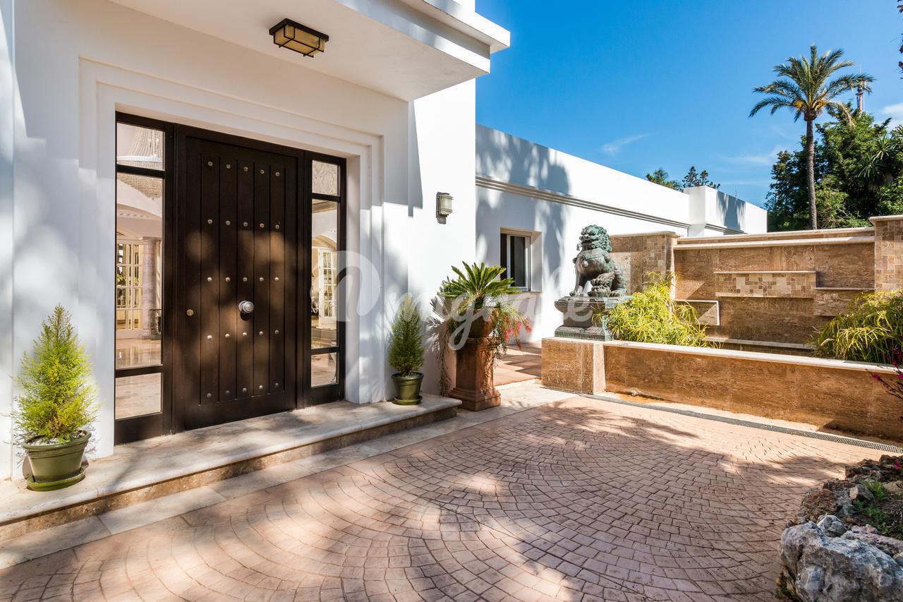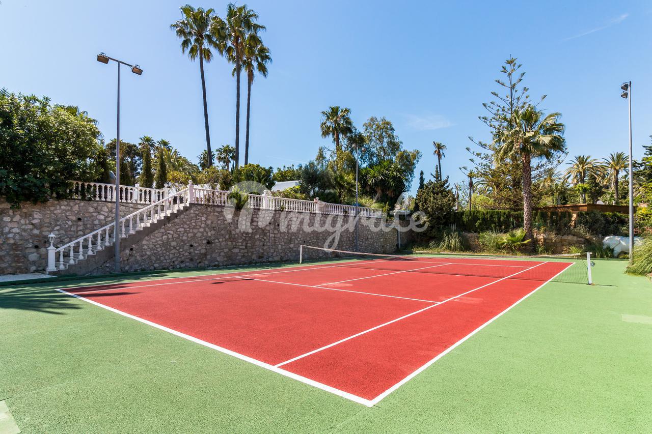 Эта одноуровневая, недавно отремонтированная вилла расположена на очень частном участке в районе Эль-Параисо-Медио, примерно в 3 км от пляжа и примерно в 100 м от ближайшего коммерческого центра на полпути между Сан-Педро-де-Алькантарой и Эстепоной. Его территория включает в себя главный дом в современном стиле, отдельный гостевой дом с гостиной, спальней, ванной комнатой и кухней, бассейн, частный теннисный корт и просторный ухоженный зрелый сад. В главном доме есть 5 спален с 5 ванными комнатами, 3 гостиные, обеденная зона, полностью оборудованная кухня, кабинет, библиотека и отдельные апартаменты для гостей с патио. Зоны отдыха, которые ведут на открытые террасы, можно было бы отгородить стеклянными занавесками Lumon.