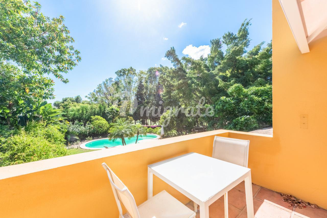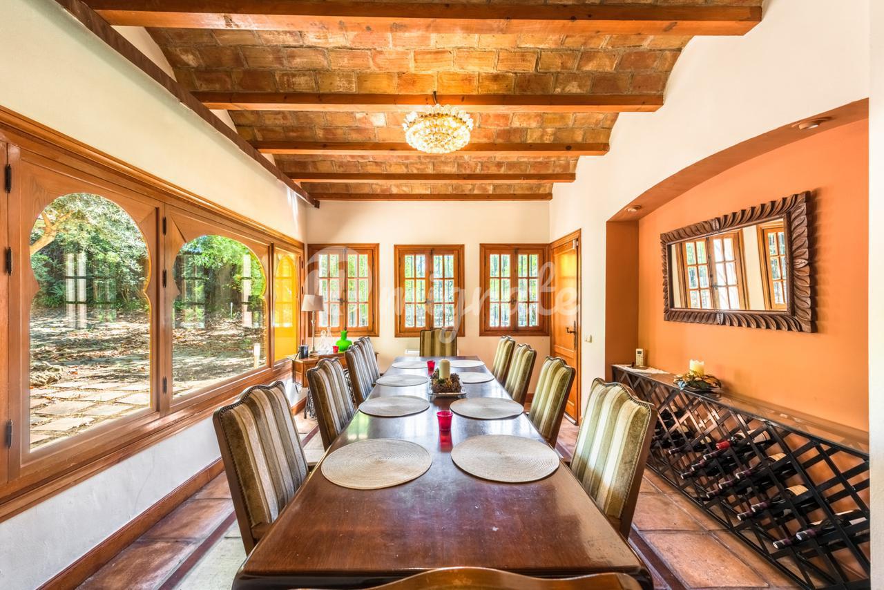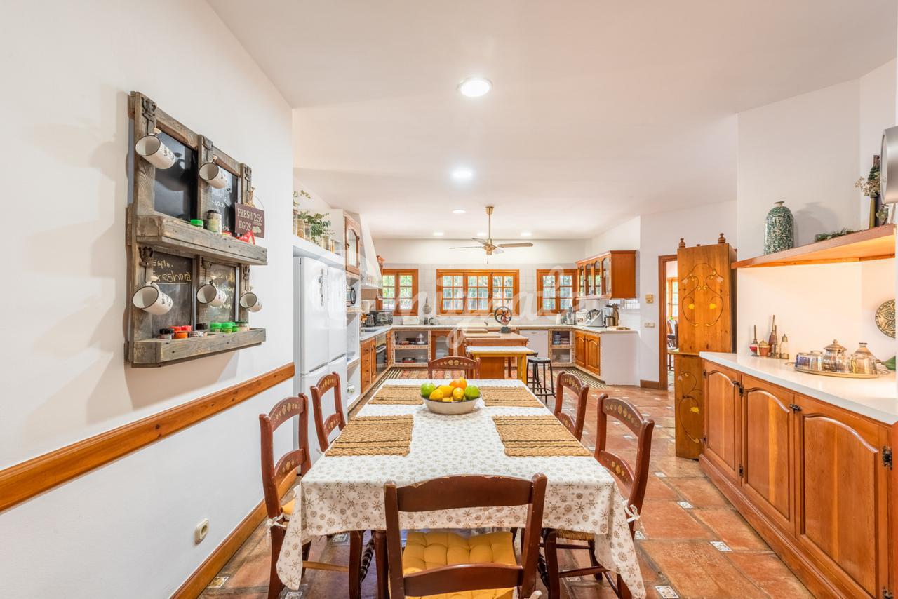 Гостиная имеет потолок двойной высоты с выступающими балками, создающий отличное ощущение пространства, и выход в сад через четыре двери. Кухня очень просторная, с выходом в столовую и прихожую, которая полностью оборудована и располагает зоной для завтрака.