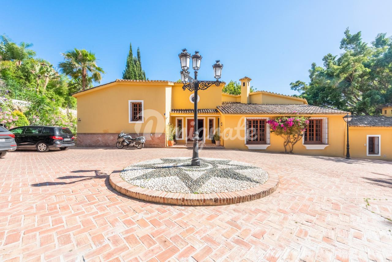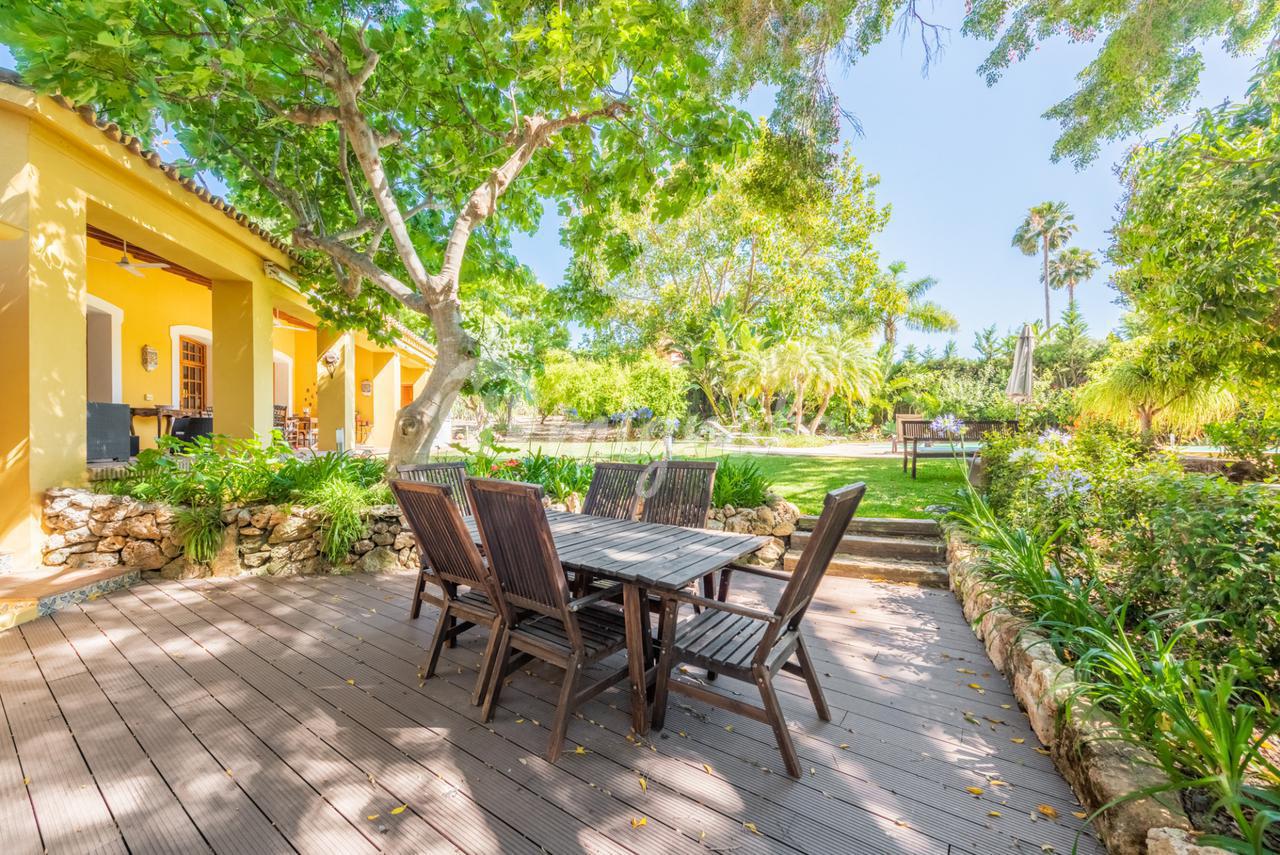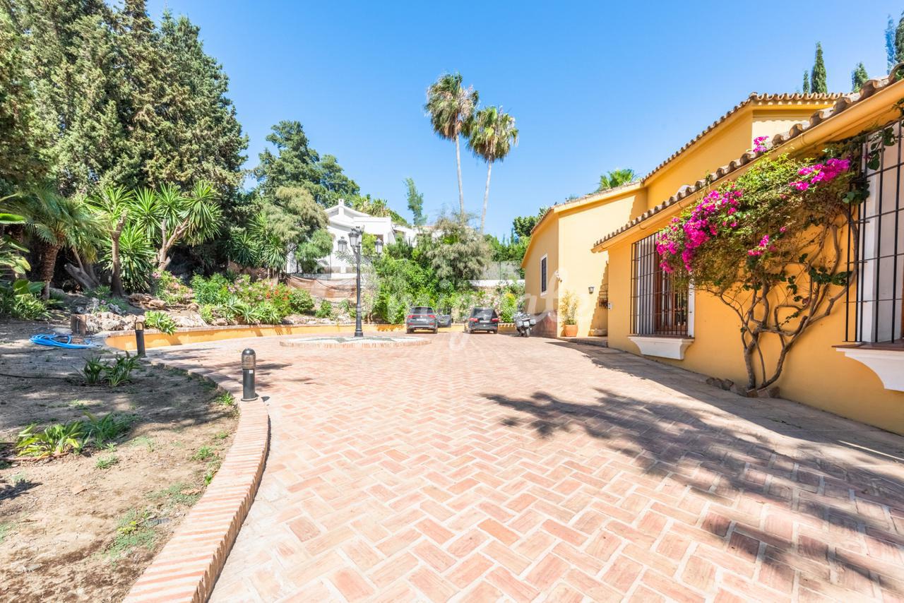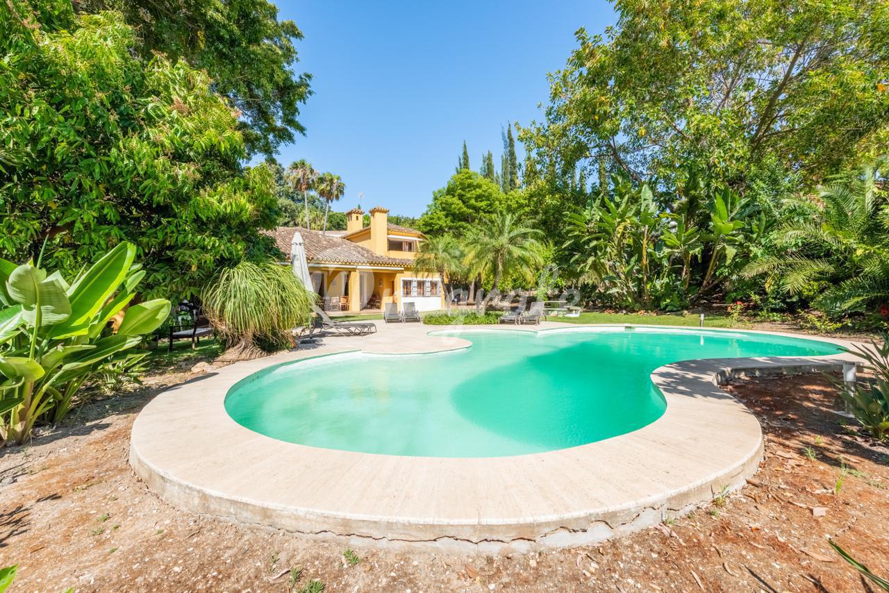 Вилла окружена зрелым и полностью орошаемым садом с растениями, кустарниками, деревьями и освещением, включающим бассейн неправильной формы площадью около 80 м2. Построен с классическим традиционным экстерьером. Столярные изделия были сделаны из древесины орегонской сосны.