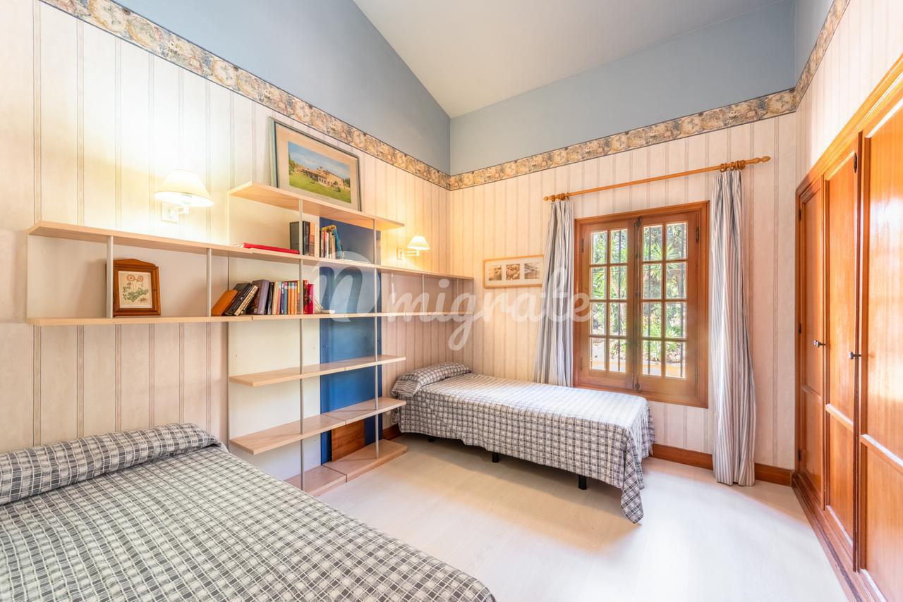 Выделяя некоторые качества виллы, мы находим офис, отделанный красным деревом; внутренние керамические полы с деревянной инкрустацией в зонах приема, совмещенные на кухне с декорированной плиткой и на террасе с мраморной инкрустацией. В ванных комнатах полы и стены отделаны мрамором, а в спальнях - паркетом, за исключением главной спальни, которая устлана ковровым покрытием.