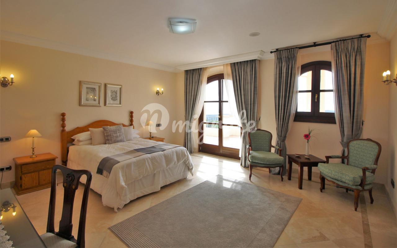 На верхнем этаже расположены три большие спальни с отдельными гардеробными и ванными комнатами. Кроме того, в главной спальне есть собственная терраса на северной стороне с видом на горы и открытая терраса, общая с остальными спальнями, откуда открывается панорамный вид на природный парк и береговую линию, охватывающую Гибралтар и Африканский Атлас.
