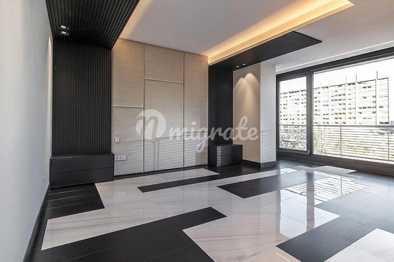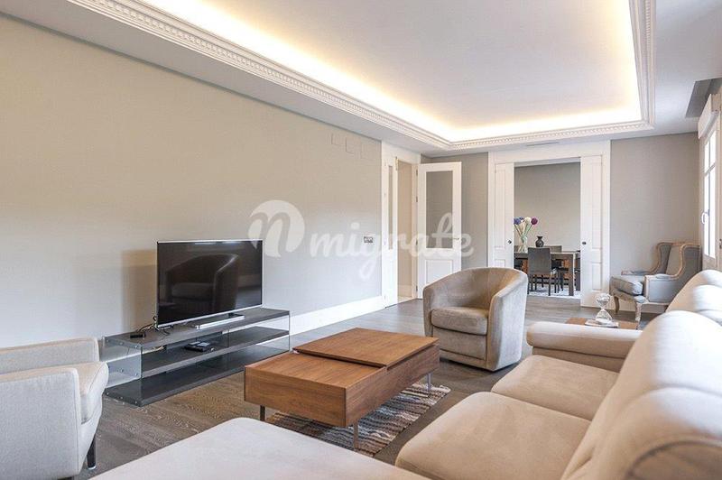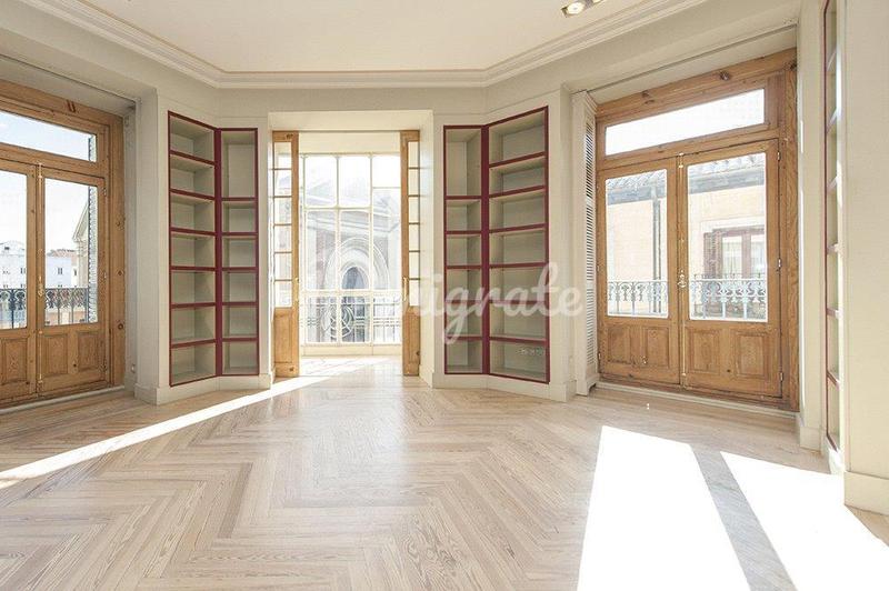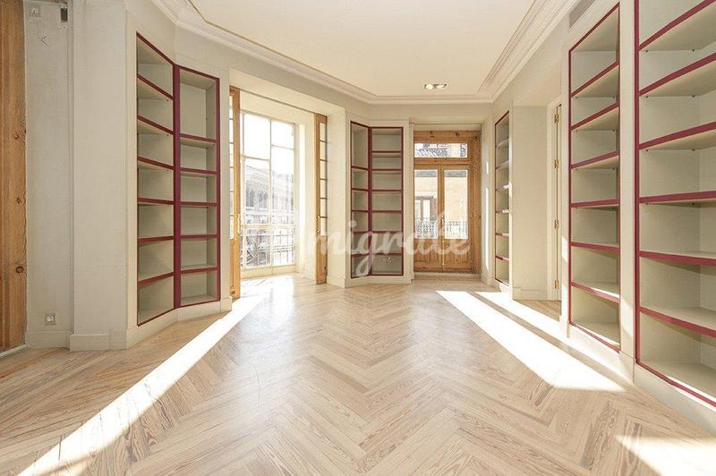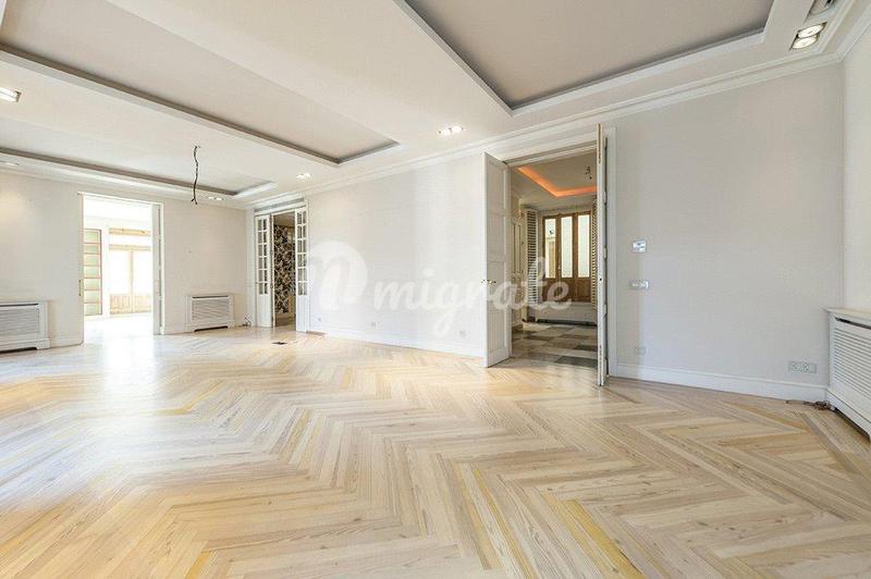 Квартира площадью 387 кв.м. расположена на пятом этаже здания с современным фасадом в самом сердце Пасео-де-ла-Кастельяна, всего в нескольких метрах от Нуэвос-Министериос.