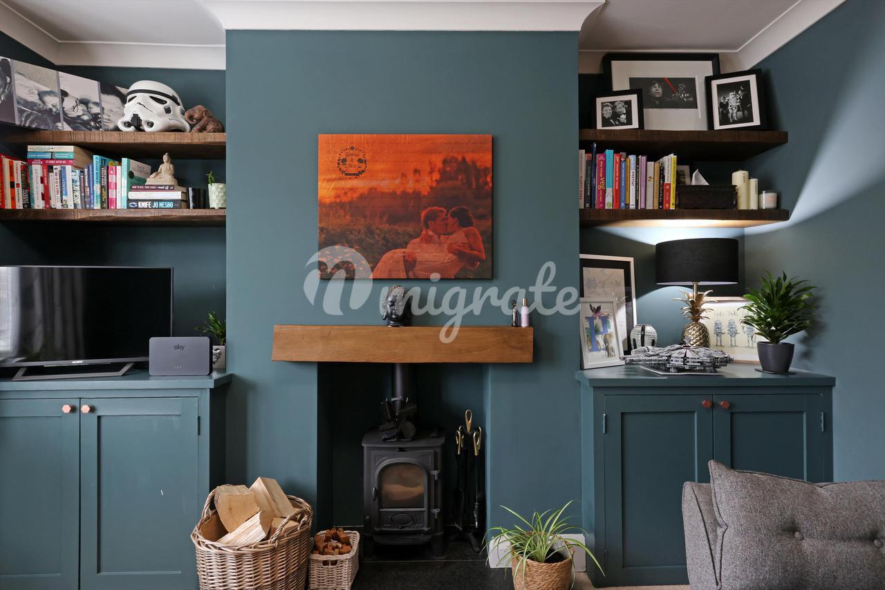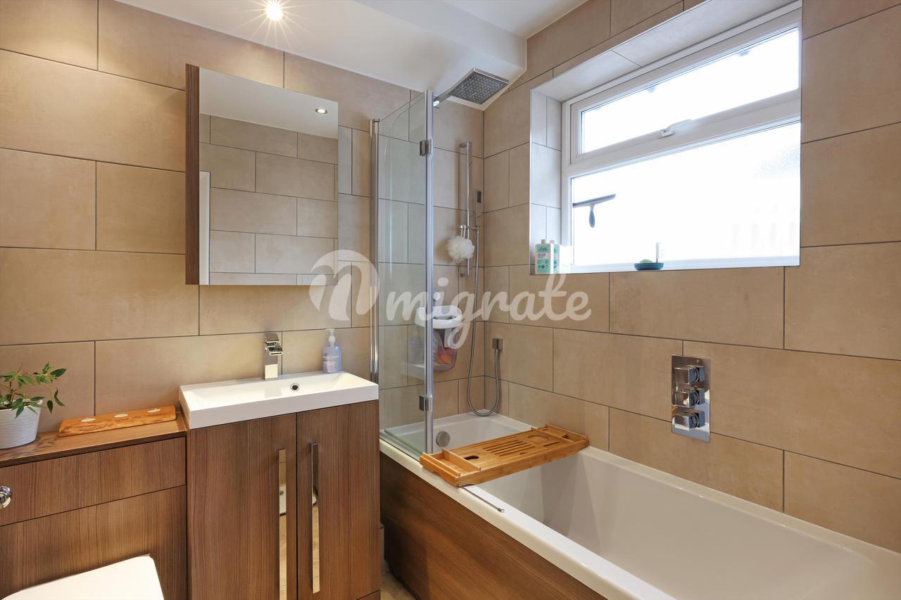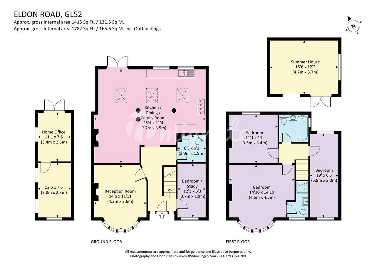 Снаружи к дому ведет большая подъездная дорожка с парковкой на две машины. Сад на заднем дворе в основном представляет собой газон со смесью зрелых растений и кустарников. В дальнем конце также есть отдельно стоящий летний домик. С правой стороны дома находится домашний офис и магазин, которые ранее были гаражом.