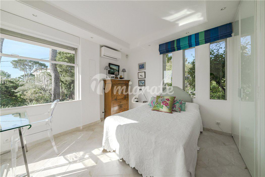 Элегантная вилла с видом на море расположена в Кап д’Антибе, рядом с пляжами. Вилла площадью 260 кв. м включает основной дом с гостевыми апартаментами и террасой на крыше с неповторимыми видами на море.