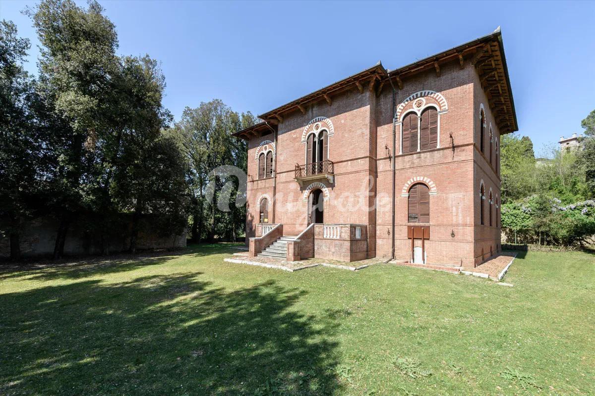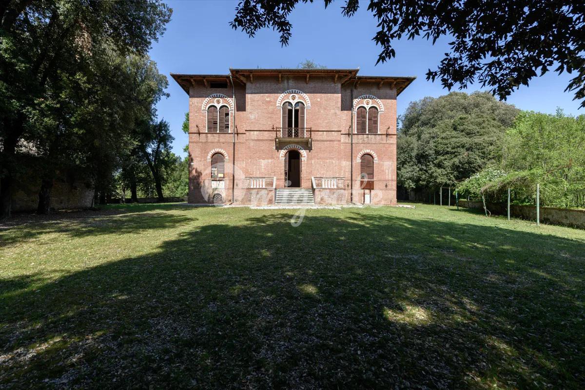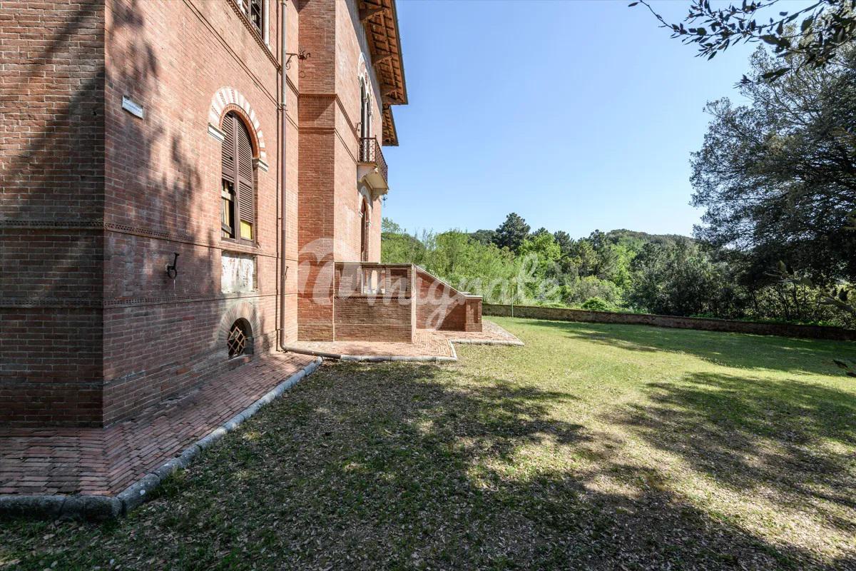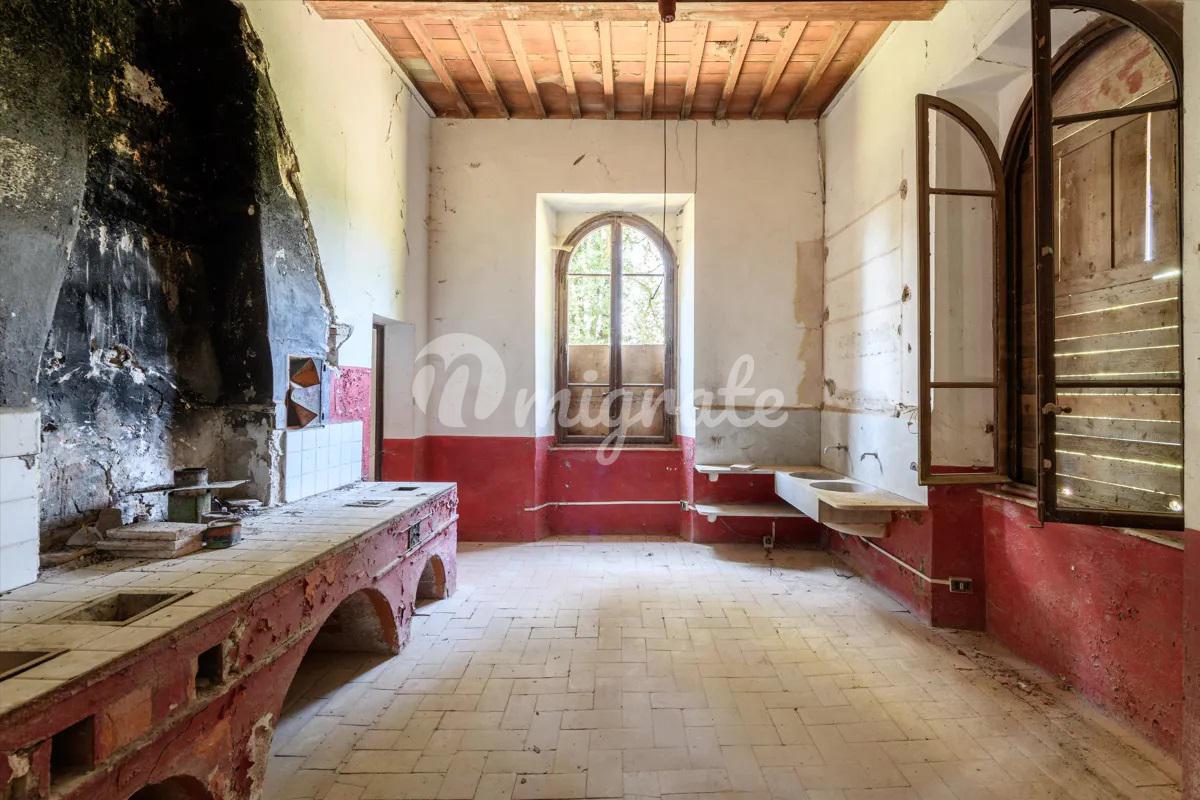 Поместье построено из типичного тосканского красного кирпича с мраморными вставками на дверях и окнах. На первом этаже находится большой холл, столовая, жилые комнаты, кухня и мастерская. Элегантная мраморная лестница ведет на второй этаж, где расположены дополнительная гостиная с балконом и 3 спальни. На втором мансардном этаже: большая гостиная и 2 спальни. В поместье есть подвал. Помещения поместья нуждаются в ремонте.