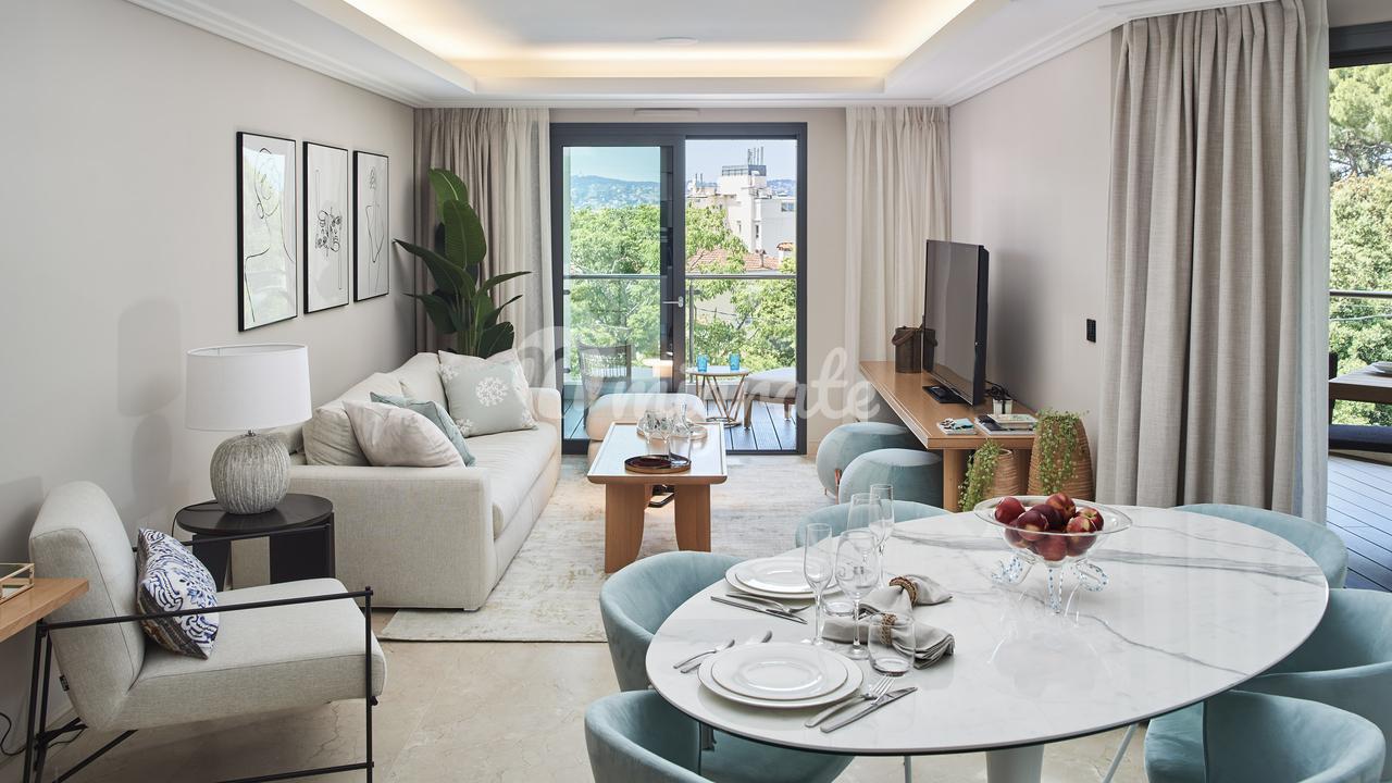 Элегантные апартаменты, расположенные в роскошной закрытой и охраняемой резиденции, включают в себя просторную гостиную зону, кухню, совмещенную со столовой, 2 спальни, 2 ванные комнаты, террасу. Встроенная кухня итальянского дизайна оснащена столешницей из кварца и техникой Siemens. В ванных комнатах установлены санитарная техника от Laufen, ванное оборудование от Hansgrohe. Апартаменты имеют систему комфортного охлаждения и обогрева, управление освещением Lutron, встроенную акустическую систему Bower and Wilkins. В апартаментах также есть прекрасная видовая терраса с деревянным настилом из бамбука. Доступен виртуальный 3D-тур.