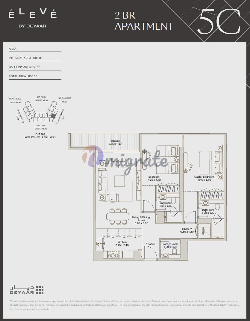 Мы рады представить эту двухкомнатную квартиру в проекте ELEVE от застройщика Deyaar.