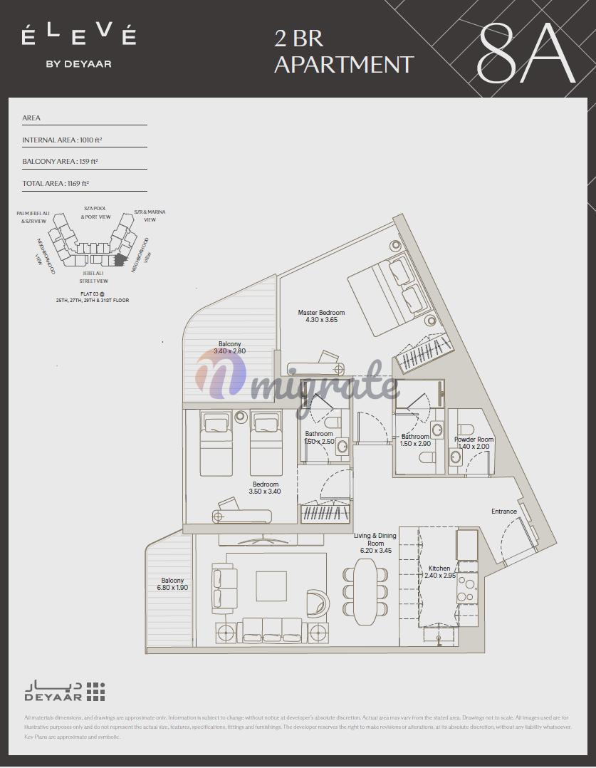 Мы рады представить эту двухкомнатную квартиру в проекте ELEVE от застройщика Deyaar.