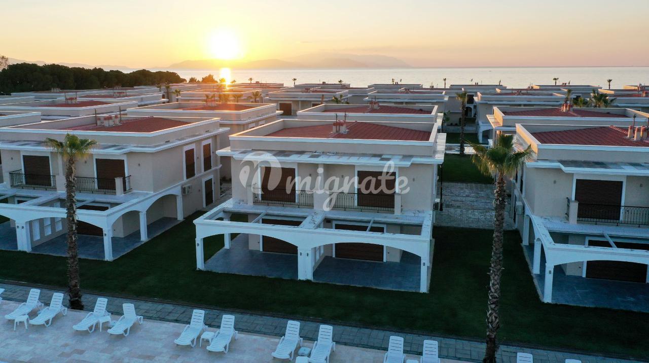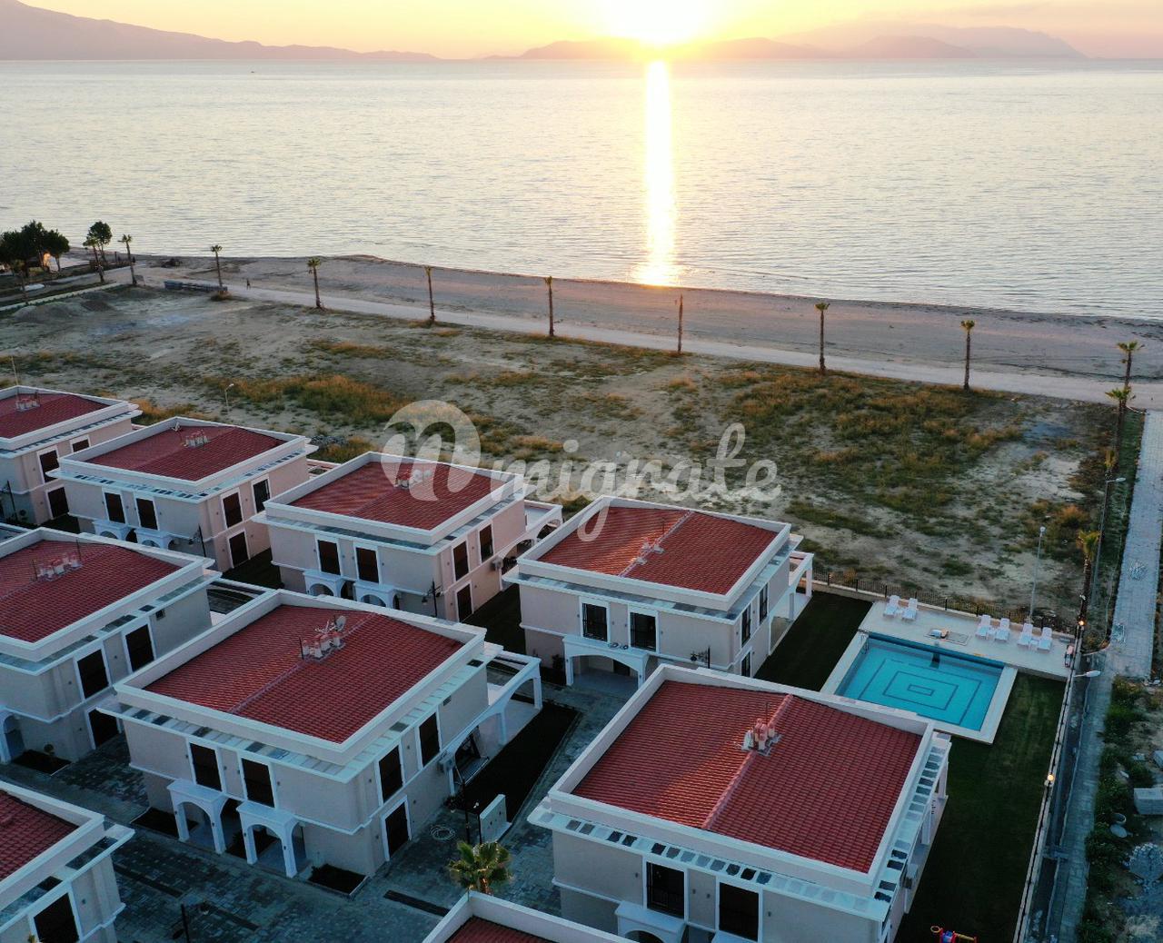 Волшебные таунхаусы и виллы прямо на Лонг-Бич в Кушадасы. В каждой вилле: 4 спальни,1 гостиная и кухня, 3 ванные комнаты, большая садовая терраса, большие балконы, частный сад, частная открытая автостоянка, ламинированные паркетные полы в спальнях, электрические жалюзи и противомоскитные сетки на окнах и дверях, домофон для связи с воротами безопасности и посетителями снаружи, открывающаяся крыша-пергола над садовой террасой, встроенные шкафы в спальнях и на входе в гостиную. На территории: 3 общих бассейна, детские бассейн, большие зоны для принятия солнечных ванн вокруг бассейнов, благоустроенные общие сады, услуги садовника, охрана, система камер видеонаблюдения, Инфраструктура: 200 метров до пляжа, ближайшие магазины - 300 м, до кафе и ресторанов - 500 м, до супермаркетов - 1,5 км, до торговых центров - 6 км, до центра Кушадасы - 15 км.