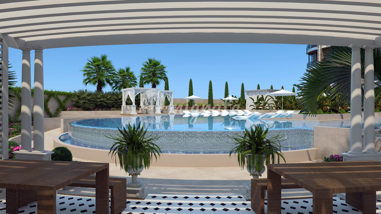 Жилой комплекс расположен в Аланье, Тосмур в 100 метрах от моря. Комплектация апартаментов: входная стальная дверь, видеодомофон, встроенная мебель на кухне и в ванных комнатах, встроенный шкаф в коридоре, полный пакет бытовой техники Siemens (холодильник, посудомоечная машина, варочная поверхность, духовка, вытяжка, стиральная машина), кондиционер в каждой комнате, подогрев полов в ванной комнате, душевые кабины, сантехника, электрический водонагреватель. Инфраструктура комплекса: открытый бассейн (410 м²), джакузи, детский бассейн, детская площадка, лобби, SPA (закрытый бассейн, турецкая баня, паровая, сауна, массажные комнаты, VIP SPA), тренажёрный зал, детская комната, кинотеатр, кафе. Особенности комплекса: огороженная территория, велопарковка, 24/7 охрана, управляющий, Wi-Fi, спутниковое TV, подсветка территории и фасадов, электрогенератор.