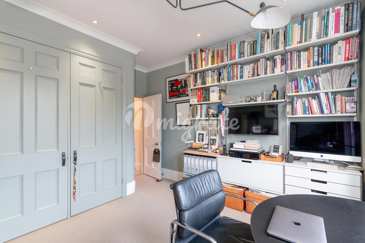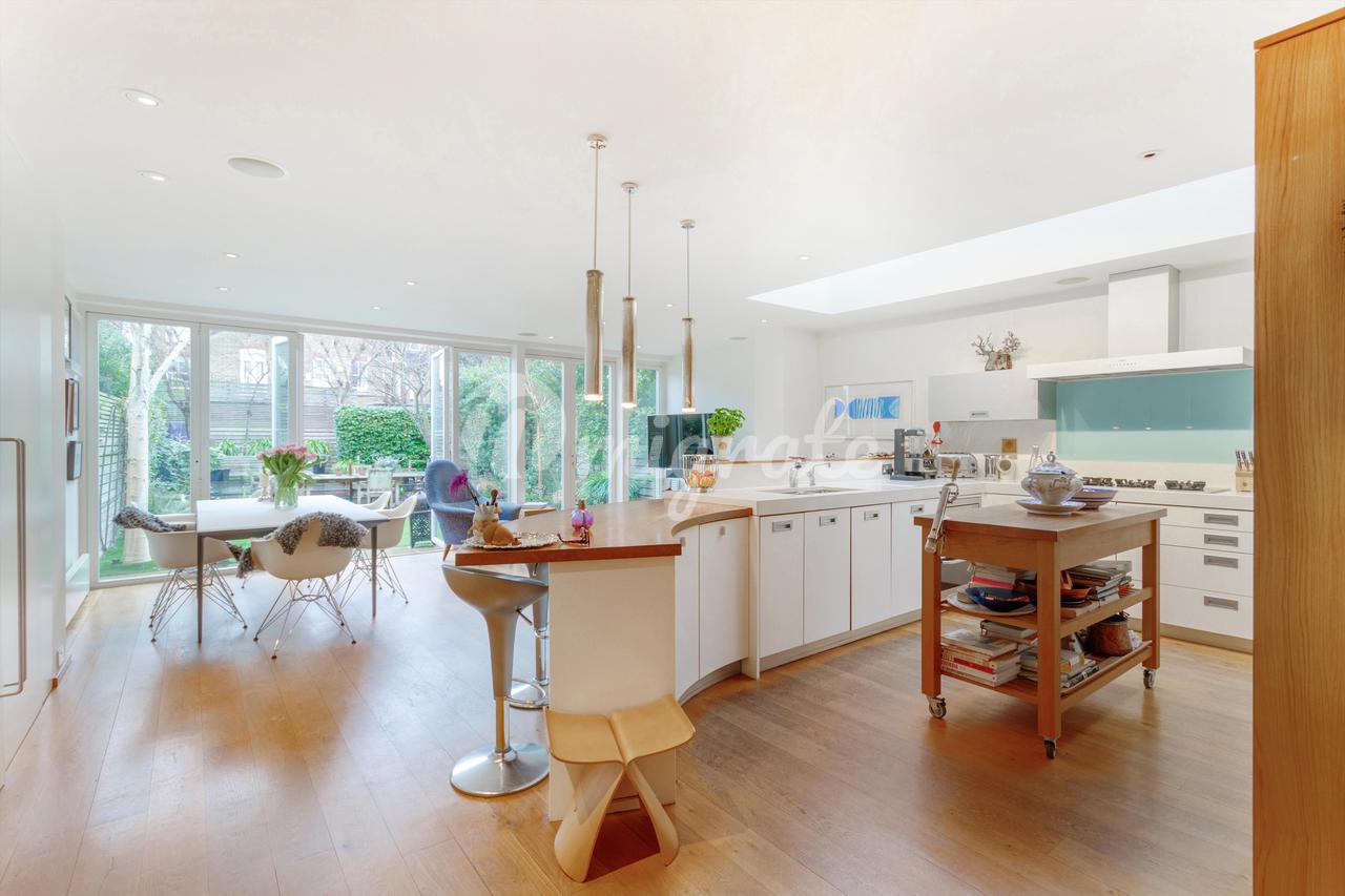 Смежный дом с пятью спальнями, впечатляющим 46-футовым садом и возможностью расширения подвала (с планировкой), что делает его идеальным для семей.
