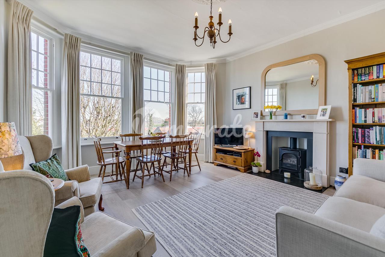 В передней части квартиры находится просторная гостиная с четырьмя створчатыми окнами, обеспечивающими привлекательный вид на зелень с великолепной восточной стороны. В номере высокие потолки и каменный камин с угольной газовой плитой, сочетающий современные удобства с традиционными чертами. Рядом с гостиной находится спальня с ковром цвета слоновой кости и встроенными шкафами. Этот высоко оцененный особняк в эдвардианском стиле отличается ухоженными садами, охраняемым помещением для хранения велосипедов и прекрасным видом на Темзу.