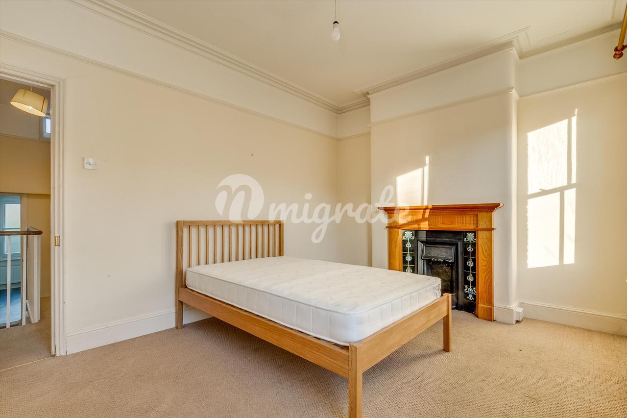Наверху есть две просторные спальни с двуспальными кроватями и просторная семейная ванная комната. Главная спальня выходит на южную сторону и снова имеет оригинальный камин и большие окна со створками. Вторая спальня выходит окнами в сад и имеет те же старинные черты. В домах этого стиля часто используются альковы, присутствующие в обеих спальнях, для встроенных складских помещений.
