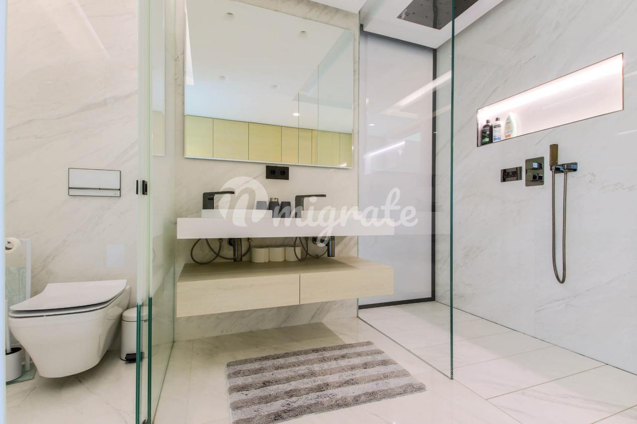 Исключительные характеристики, такие как кондиционирование горячего и холодного воздуха в гостиной и спальнях с помощью воздуховодов, включая внутренний и внешний блок, инвертор с системой воздушной зоны, встроенной в систему управления умным домом. Полы с подогревом по всей квартире с использованием трубопровода горячей воды, ванные комнаты с подвесными унитазами из белого фарфора, элитная кухня с водонепроницаемыми поверхностями и бытовой техникой Miele, керамогранит по всей квартире, раздвижные алюминиевые двери от пола до потолка, двойное остекление с солнцезащитным контролем, раздвижные двери скроют в стены, полностью цифровое открытие с помощью распознавания отпечатков пальцев на всех входах в блок, а также на главной входной двери в комплекс и звуковая система, встроенная в потолок, являются одними из исключительных особенностей этой квартиры.