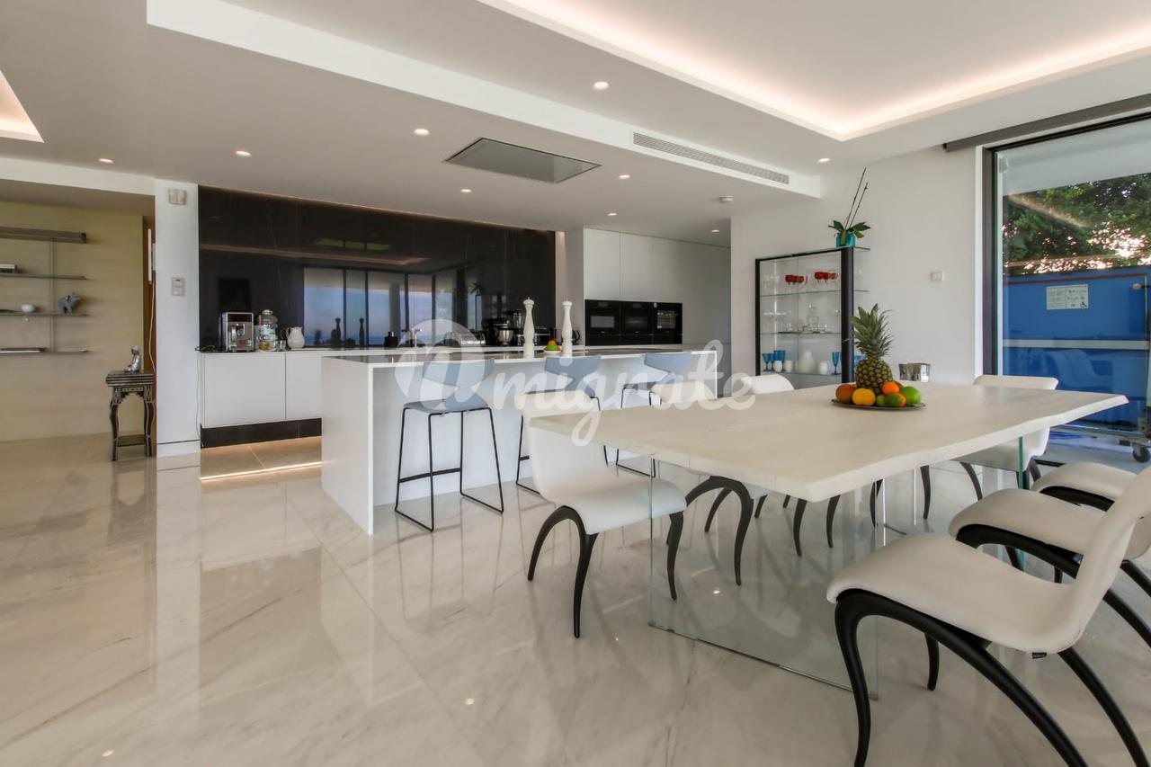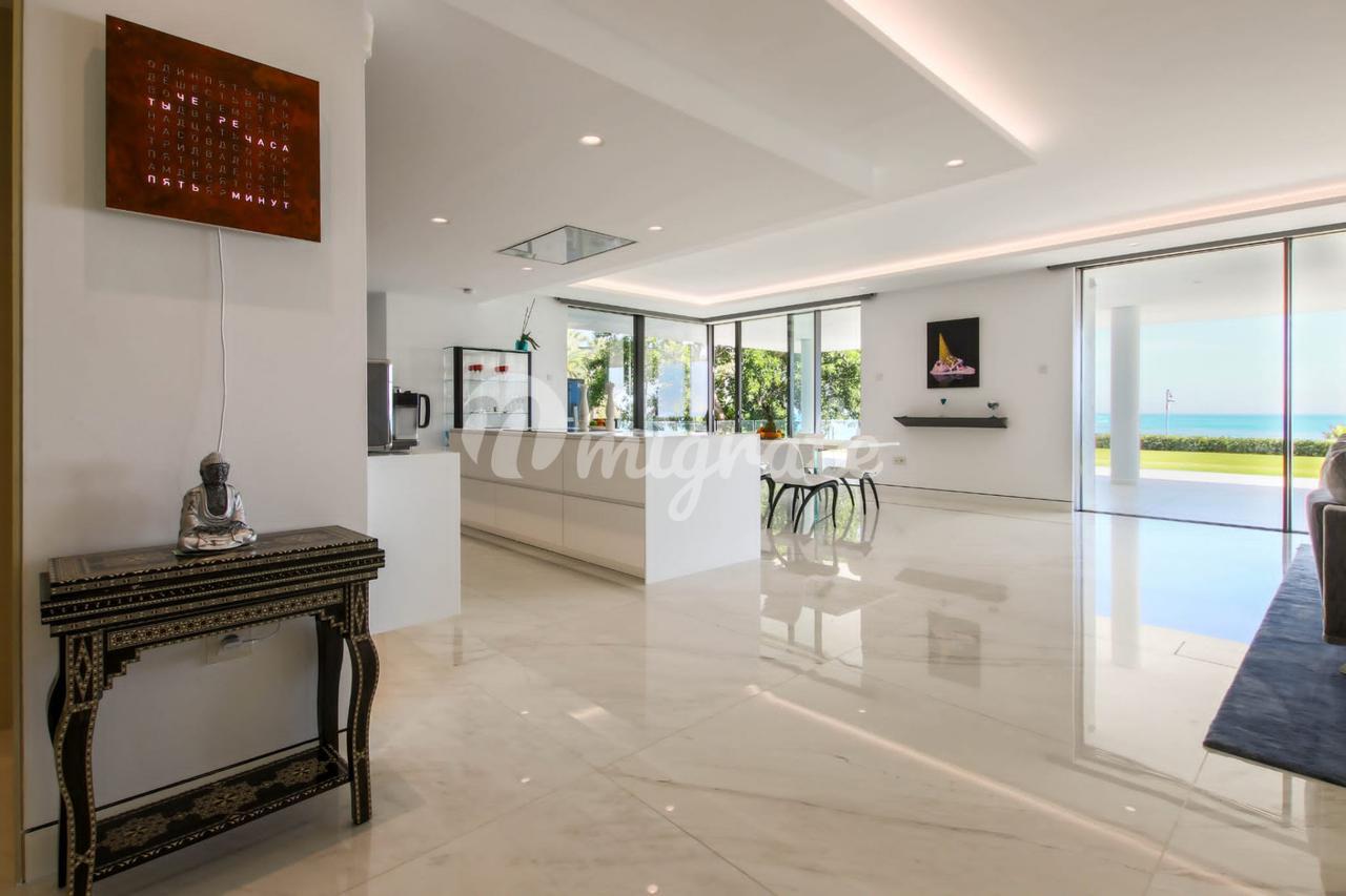 Эта уникальная недвижимость занимает весь первый этаж здания, расположенного в комплексе из 28 квартир с видом на море. Собственность имеет прямой доступ из частного сада к местам общего пользования и бассейну. Это единственная квартира в поселке без соседей по бокам. Кроме того, это одна из самых больших квартир и самый большой частный сад в поселке.