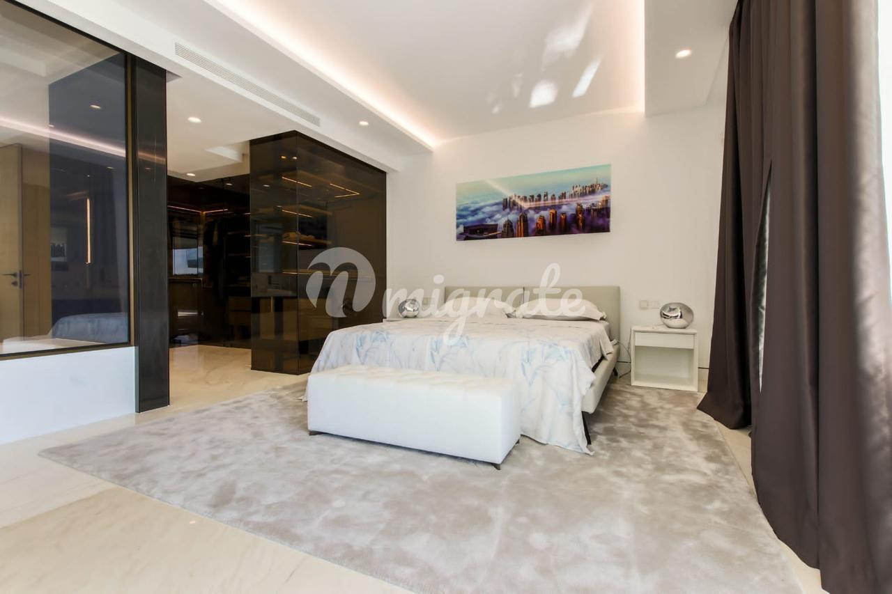 Недвижимость состоит из просторной гостиной/столовой и кухни открытой планировки, гостевого туалета и частного лифта. Есть 4 спальни с 4 ванными комнатами. В главной спальне есть большая гардеробная и общая терраса с гостиной. кроме того, в квартире есть собственный кинозал и 3 парковочных места, а также кладовая на нижнем уровне, куда можно подняться с помощью частного лифта.