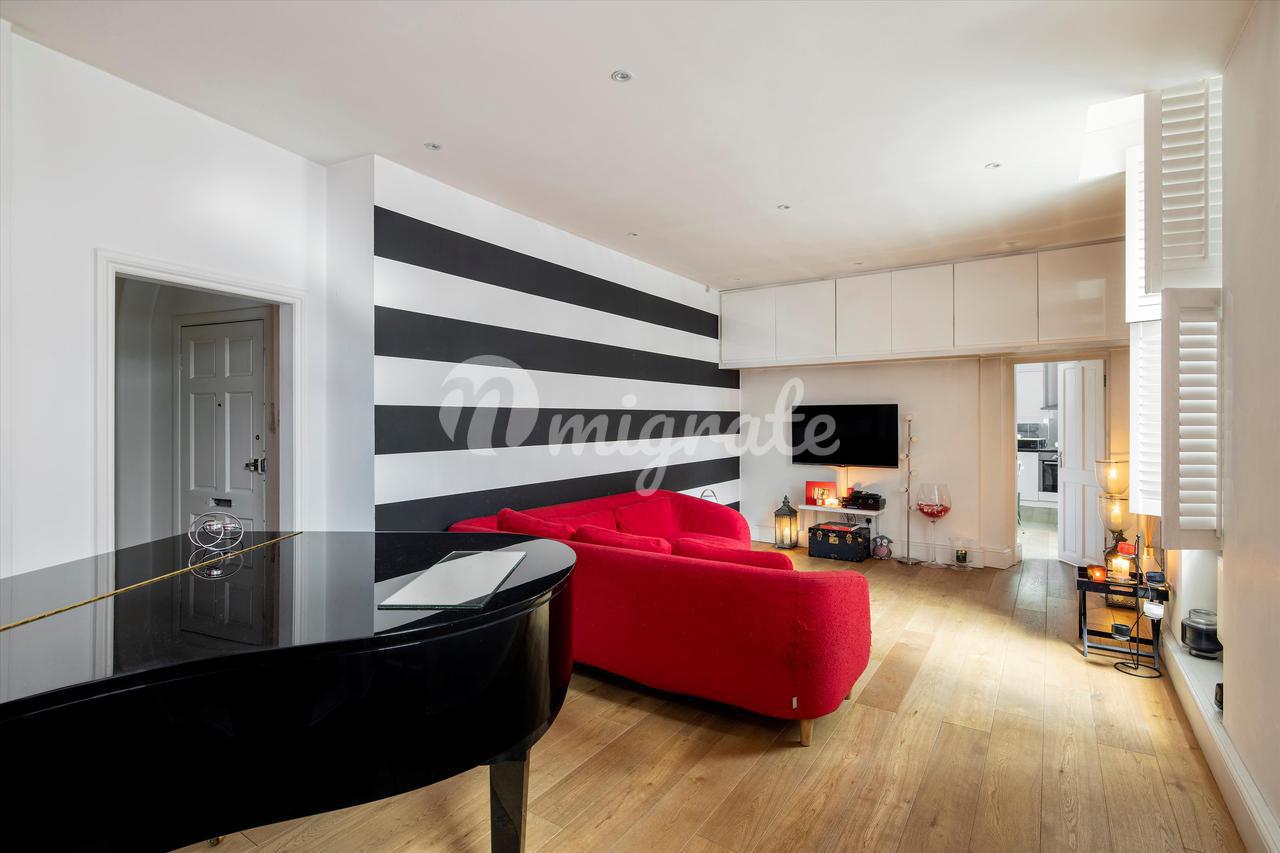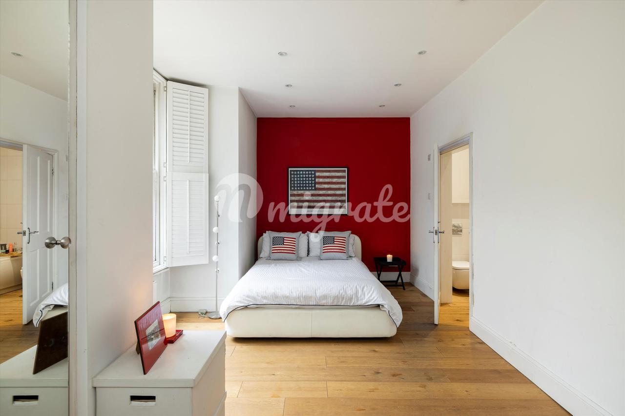 Эта просторная квартира (ранее с тремя спальнями) располагает просторной гостиной (в настоящее время с роялем), просторной прихожей и большой кухней-столовой. В задней части здания находится большая спальня с двуспальной кроватью, которая имеет отдельный выход в общий сад и собственную ванную комнату. Имущество великолепно обставлено, с высокими потолками, дубовыми полами и отличным местом для хранения вещей по всей территории. В собственности также есть свой собственный отдельный вход, доступ к которому осуществляется через небольшой внутренний дворик спереди.