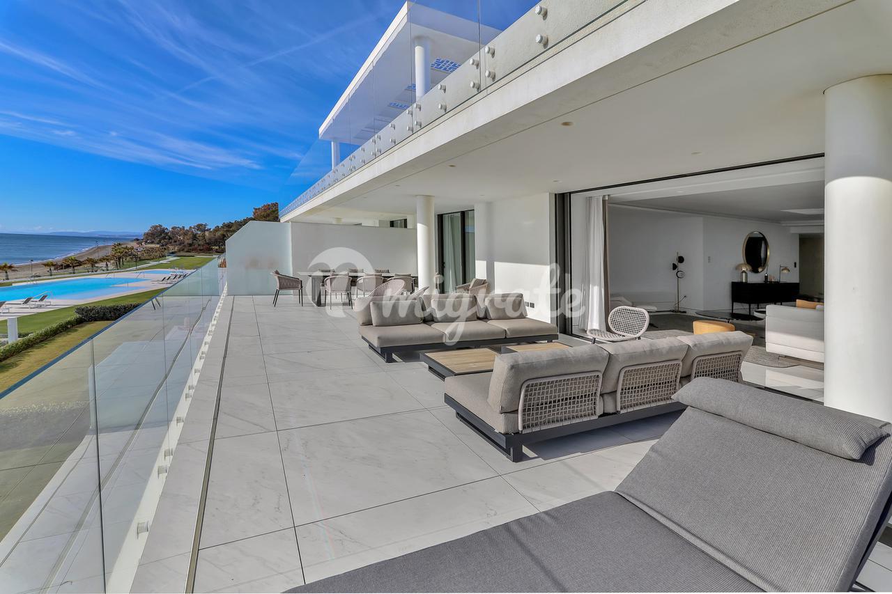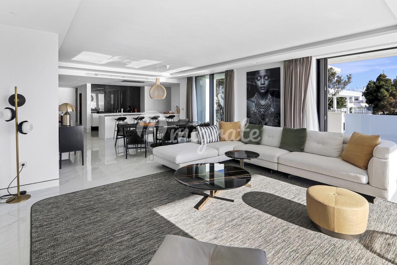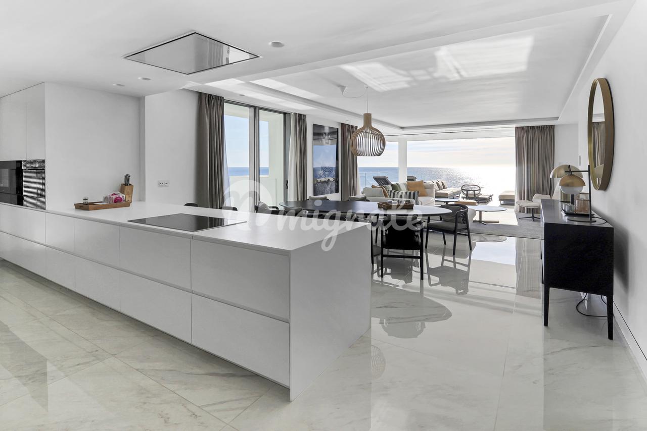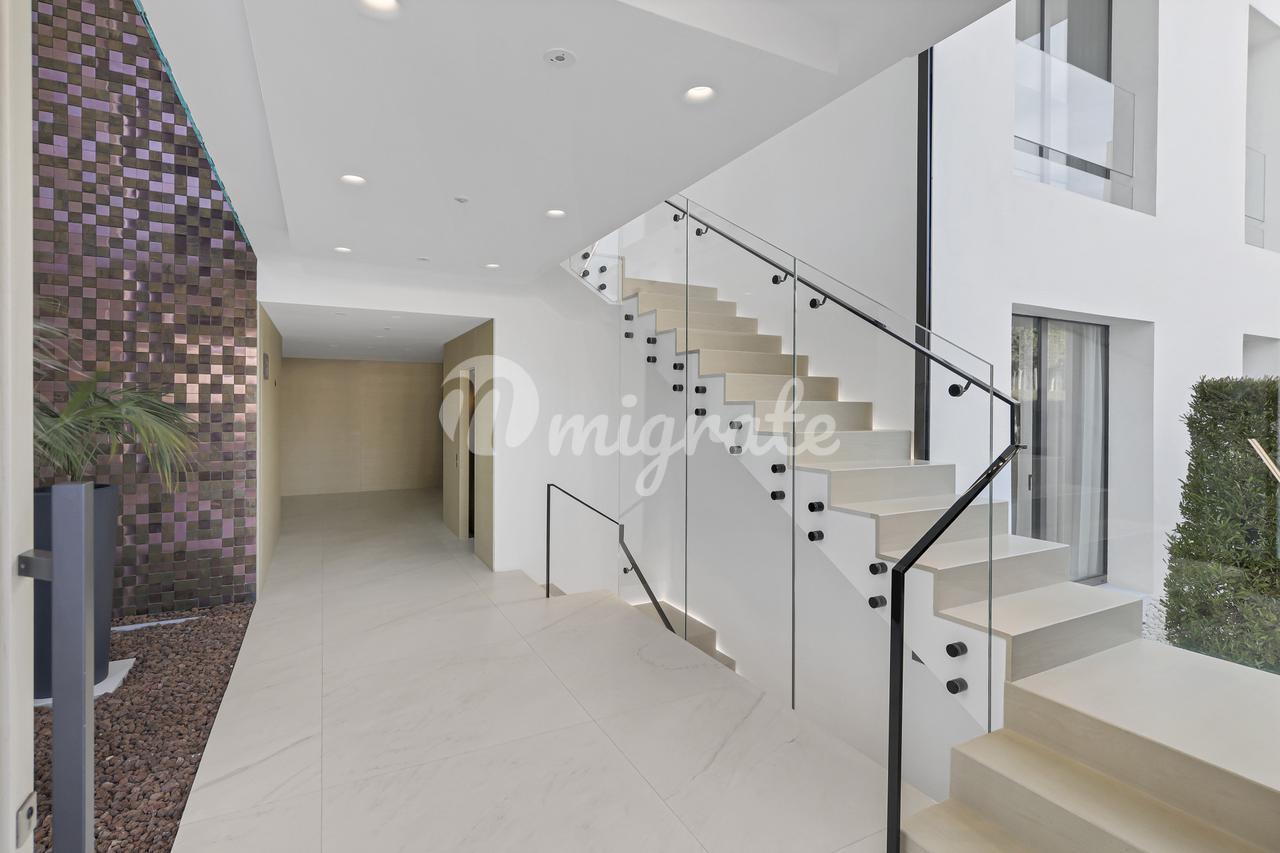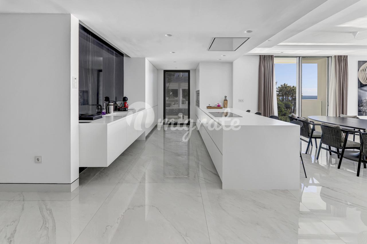 Полы с подогревом по всей квартире с использованием трубопровода горячей воды, ванные комнаты с подвесными унитазами из белого фарфора, элитная кухня с водонепроницаемыми поверхностями и бытовой техникой Miele, керамогранит по всей квартире, раздвижные алюминиевые двери от пола до потолка, двойное остекление с солнцезащитным контролем, раздвижные двери скроют в стены, полностью цифровое открытие через распознавание отпечатков пальцев на всех входах в блок, а также на главной входной двери в комплекс и звуковая система, встроенная в потолок, являются одними из исключительных особенностей этой квартиры.