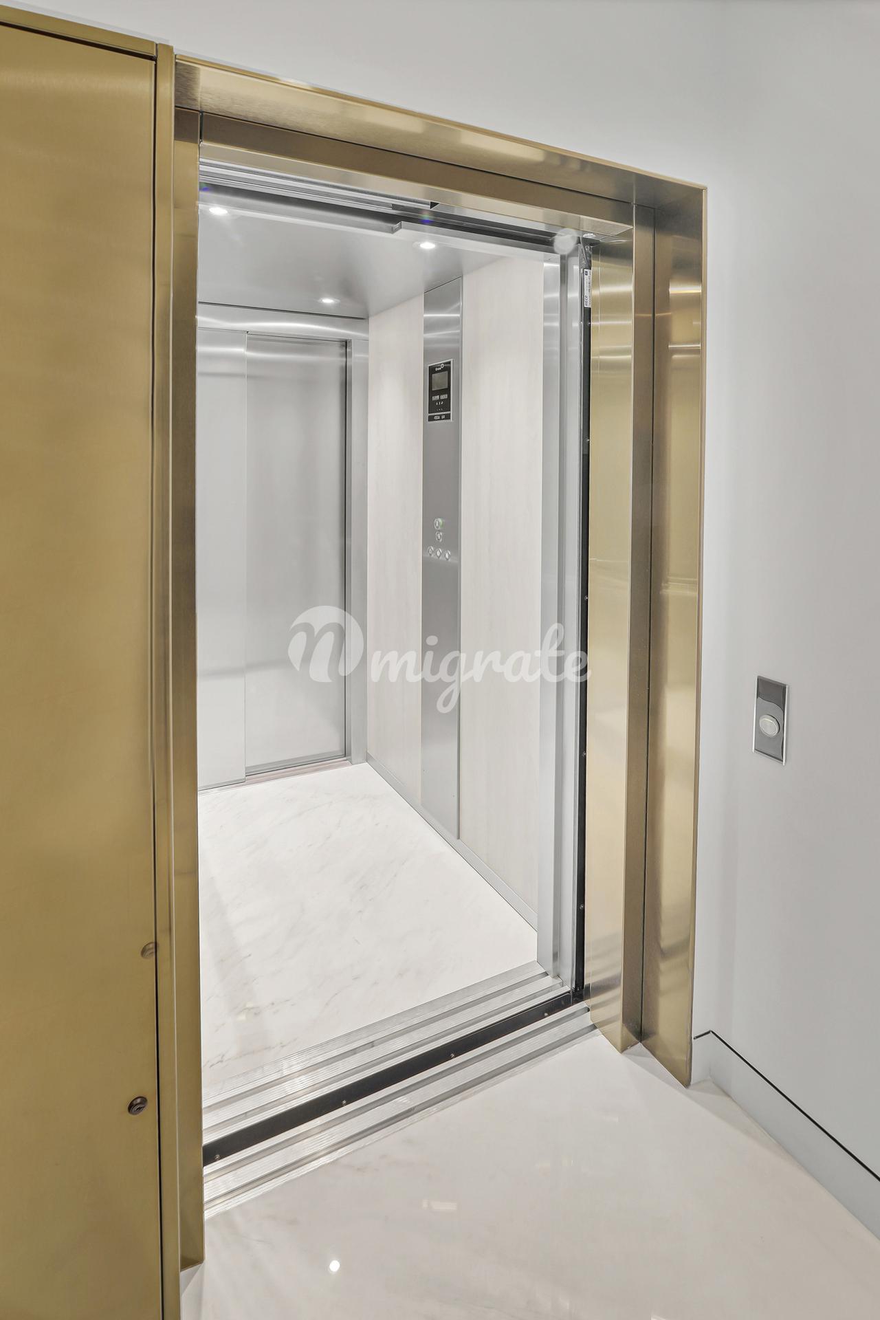 Квартира с частным лифтом с подземного уровня состоит из большой столовой и кухни открытого плана, гостевого туалета и частного лифта. Есть четыре спальни с четырьмя ванными комнатами. В главной спальне есть большая гардеробная и общая терраса с гостиной. Кроме того, есть большая комната, оборудованная прачечной и ванной комнатой, расположенная на подземном уровне и связанная с квартирой частным лифтом.