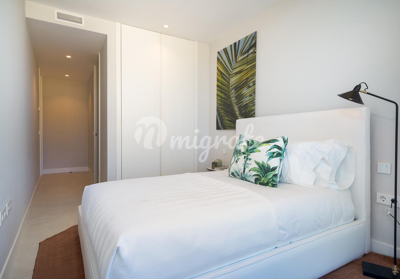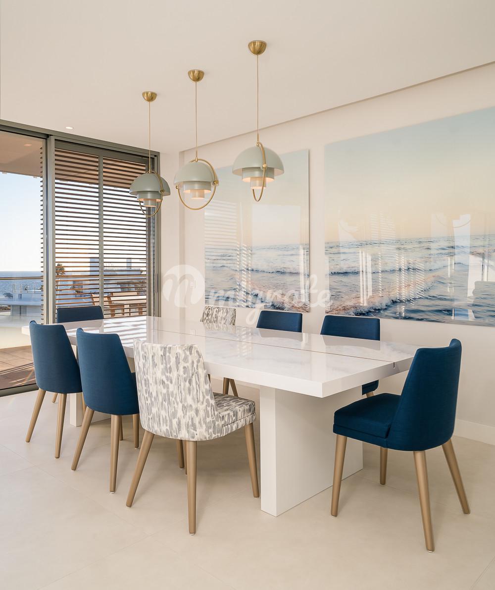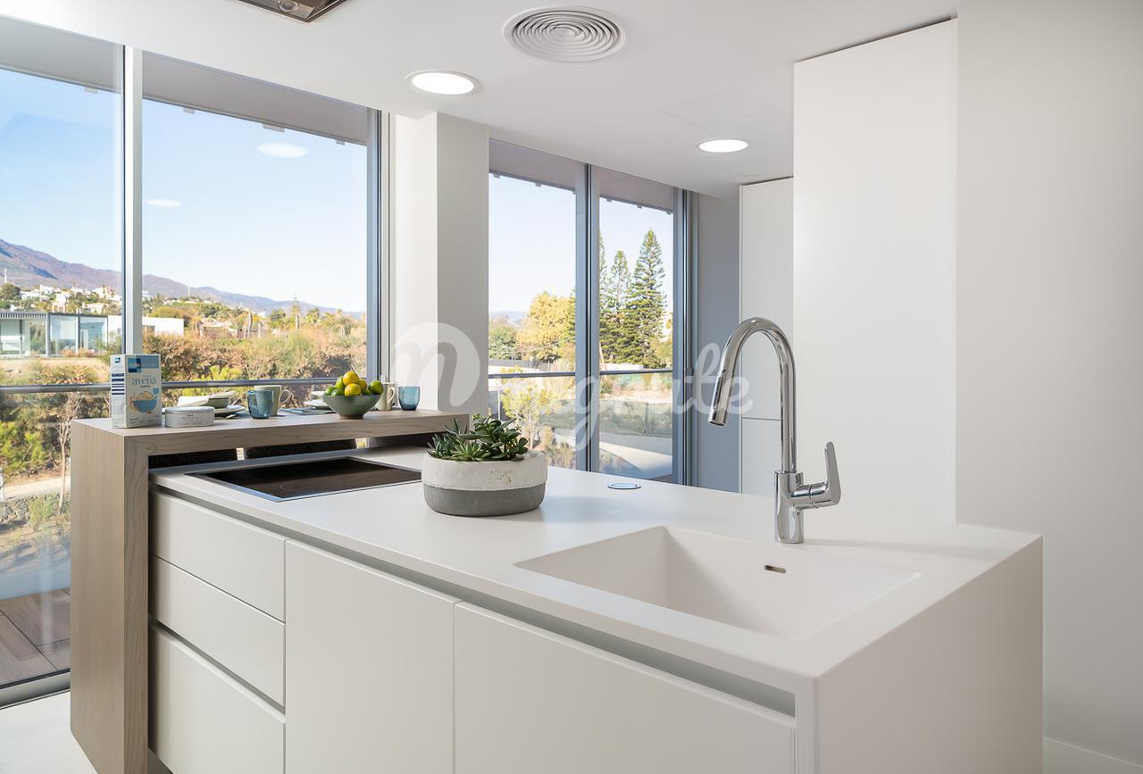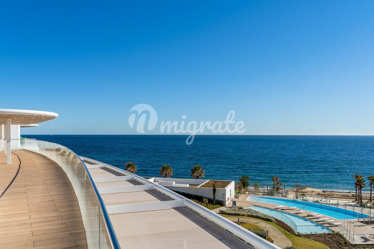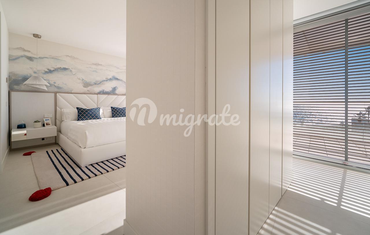 Этот красивый двухуровневый пентхаус имеет 4 спальни с ванными комнатами и гостевой туалет. Гостиная/ столовая с фронтальным видом на море просторная и светлая благодаря многочисленным окнам от пола до потолка. Полностью оборудованная кухня с бытовой техникой Gaggenau. Прекрасная терраса окружает квартиру, что делает ее приватной, и с нее открывается невероятный вид на побережье Средиземного моря. Спальня с ванной комнатой в одном крыле дома и три дополнительные спальни также с ванными комнатами в другом крыле собственности завершают планировку нижнего уровня. На верхнем уровне расположен большой солярий с частным бассейном и панорамным видом на море и горы. Террасы на первом этаже плюс солярий имеют приблизительную площадь 500 м2.